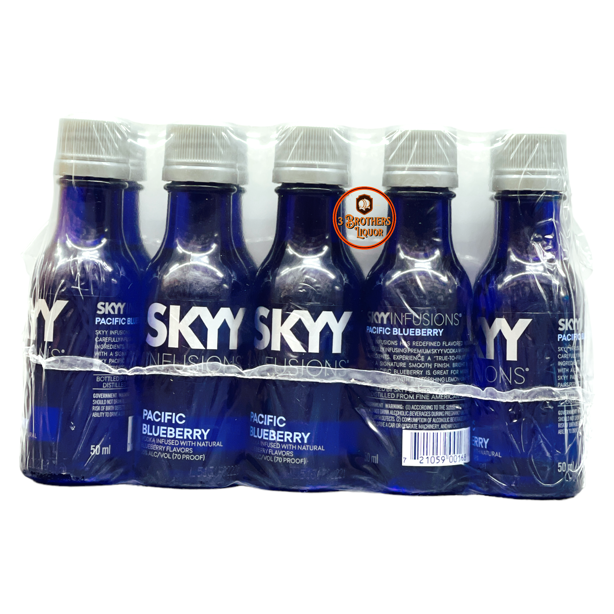 Sky Infusion Pacific Blueberry Flavoured Vodka (10 Of 50ML). SKYY vodka is the first quadruple distilled, triple filtered premium American vodka created in San Francisco in 1992. SKYY has redefined vodka with flavor by carefully making vodka infused with real fruit.