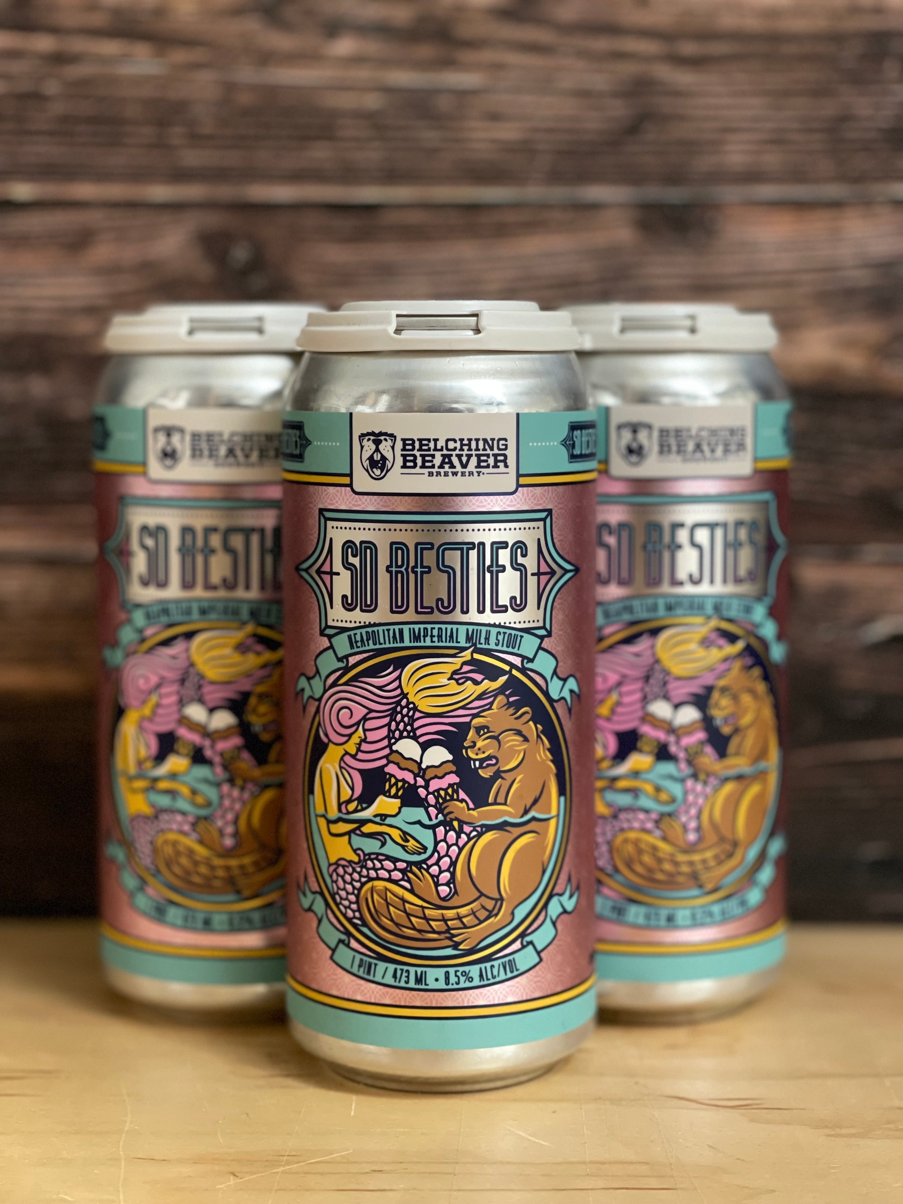 Belching Beaver SD Besties Imperial Stout Beer. We’ve always had a tight bond with @coronadobrewing, and we wanted to celebrate with a special collaboration. SD Besties is our take on a liquid Neapolitan treat with notes of strawberry, chocolate, and vanilla that you’ll want to share with your BFF. We hope when you drink this beer, you’ll think of simpler times when it was all about meeting up with your bestie for some DAM GOOD TIMES.