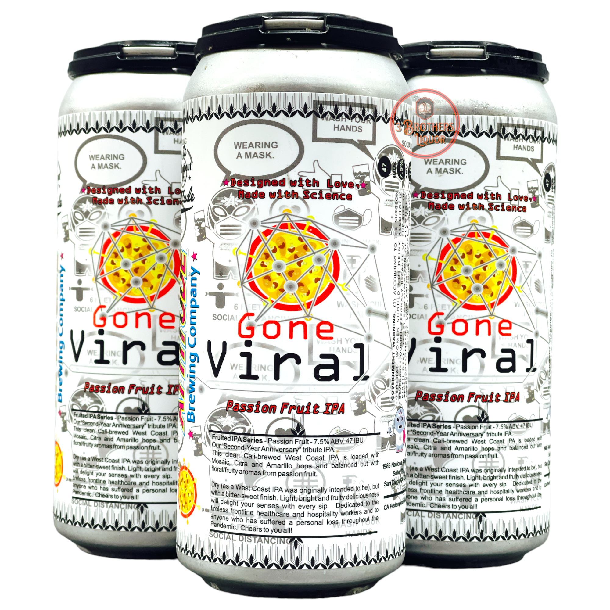 Attitude Brewing Gone Viral Passion Fruit IPA Our Second-Year Anniversary tribute IPA. This clean Cali-brewed, West Coast IPA is loaded with Mosaic, Citra and Amarillo hops and balanced out with floral/fruity aromas from passion fruit.