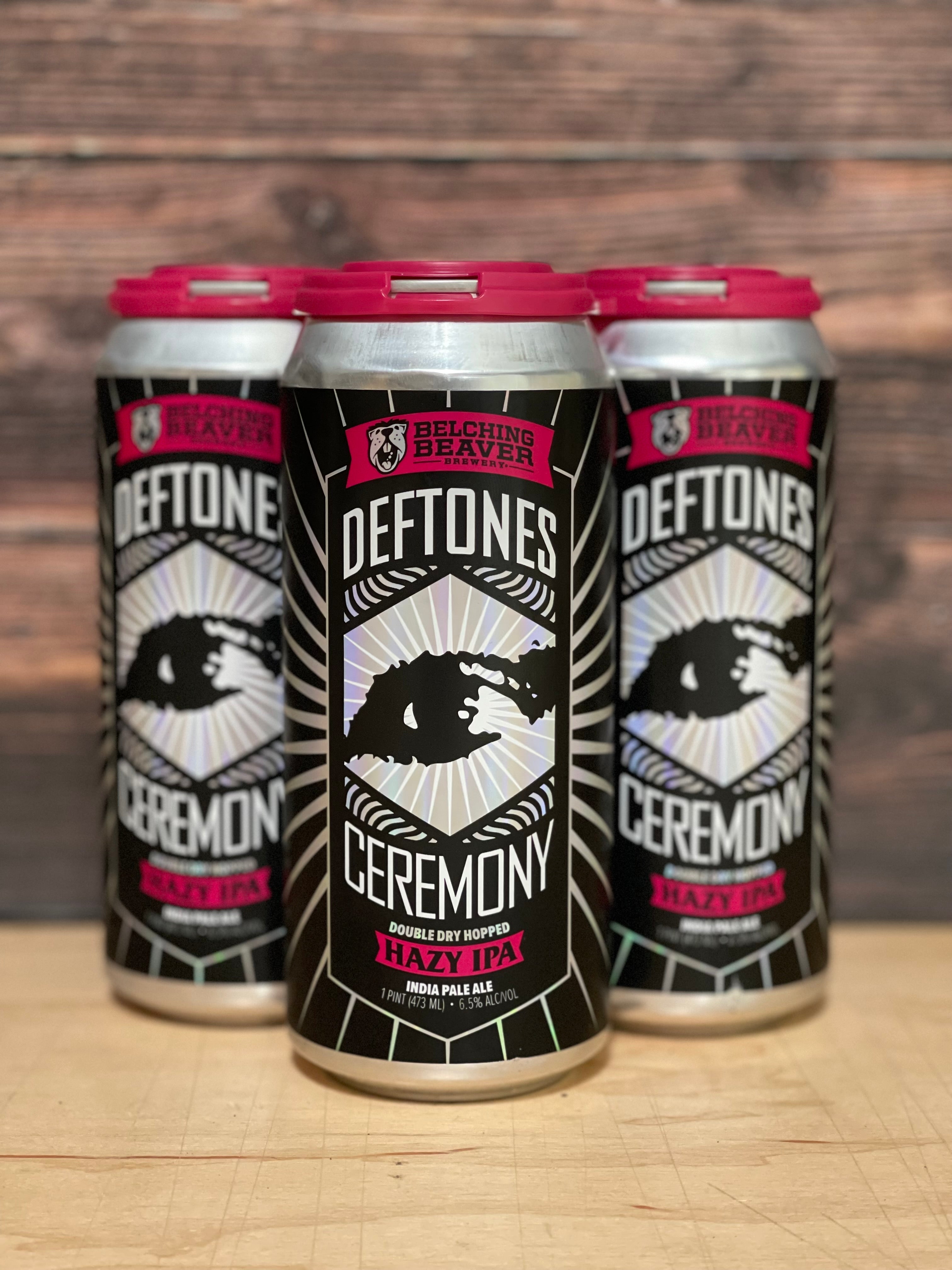 Belching Beaver Deftones Ceremony Double Dry Hazy IPA. The latest in our collaboration series with deftones, ceremony takes an easy drinking Hazy IPA and pushes the limits of our dry-hopping regiment- doubling down on juicy and tropical hop varietals that merit commemoration.