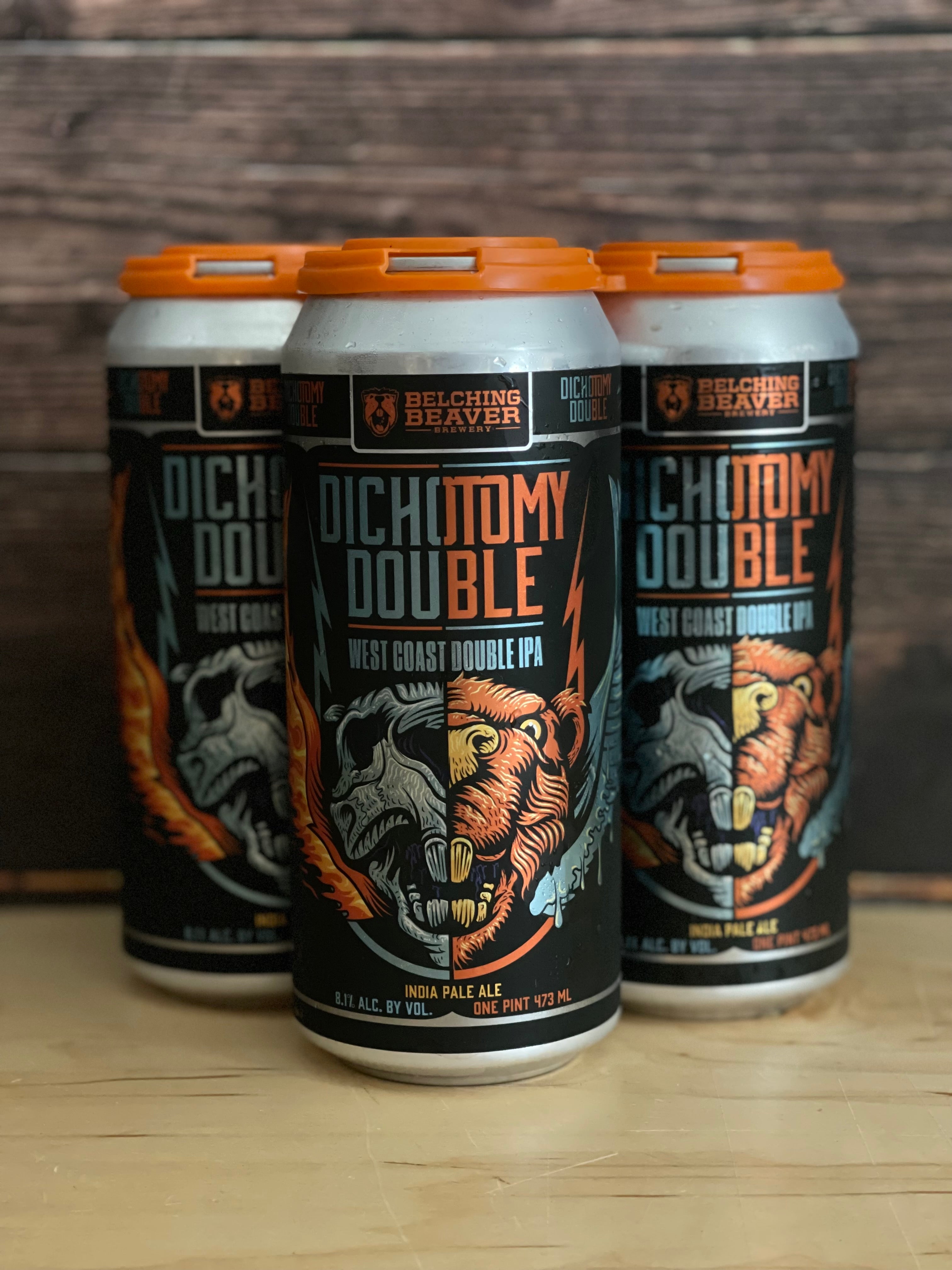 Bleaching Beaver Dichotomy Double West Coast Double IPA. This double IPA is the glorification of opposites. Boasting hops from opposite sides of the world, Dichotomy celebrates Idaho 7 and Galaxy as its two predominant hops sprinkled with Nelson and Citra. Slightly sweet malt with true hoppy bitterness. (ABV: 8.1%) 16oz 4-pack.