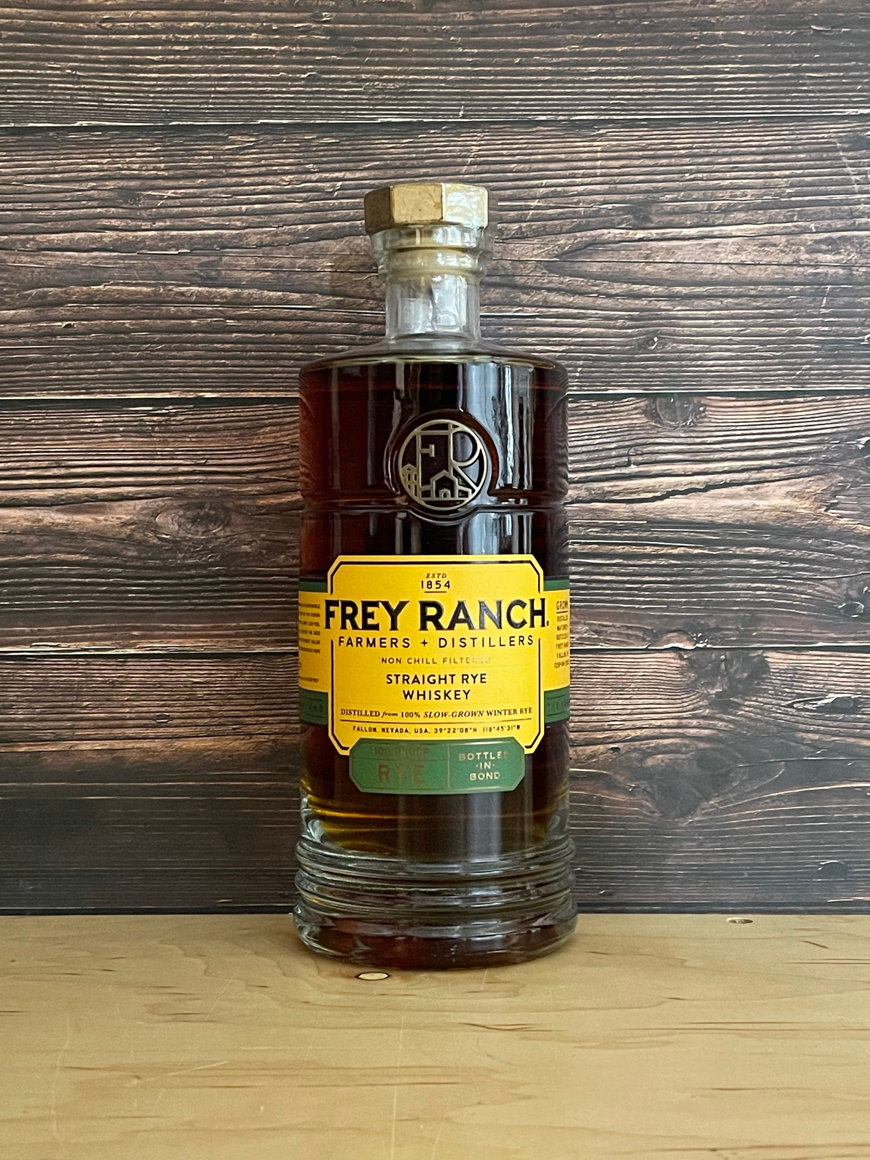 Frey Ranch Straight Rye Whiskey. Introducing Frey Ranch Bottled-in-Bond Straight Rye Whiskey. Made with sustainably grown winter rye raised on the Frey Ranch, this 100% rye whiskey, is smooth enough to sip yet spicy enough to shine in a cocktail.