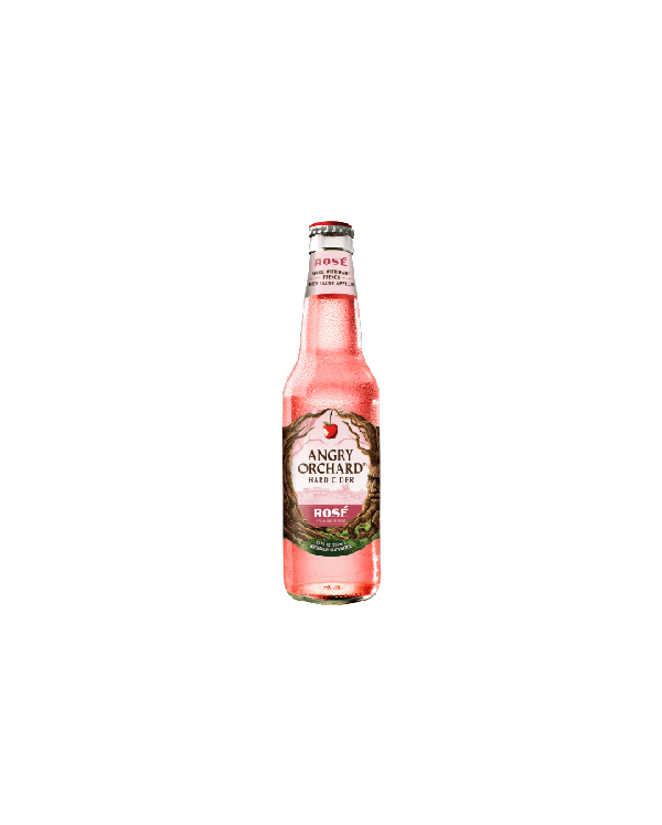 Angry Orchard Rosé hard cider uses a combination of fresh juice from rare red-fleshed apples sourced in France and hibiscus. This cider has a floral aroma, is apple forward in taste and complemented by refreshing light tannins, similar to semi-dry wine.