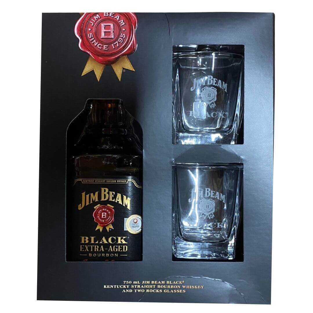 Jim Beam Black Extra Aged Bourbon Whiskey W/ 2 Rock Glasses (Limited Edition)