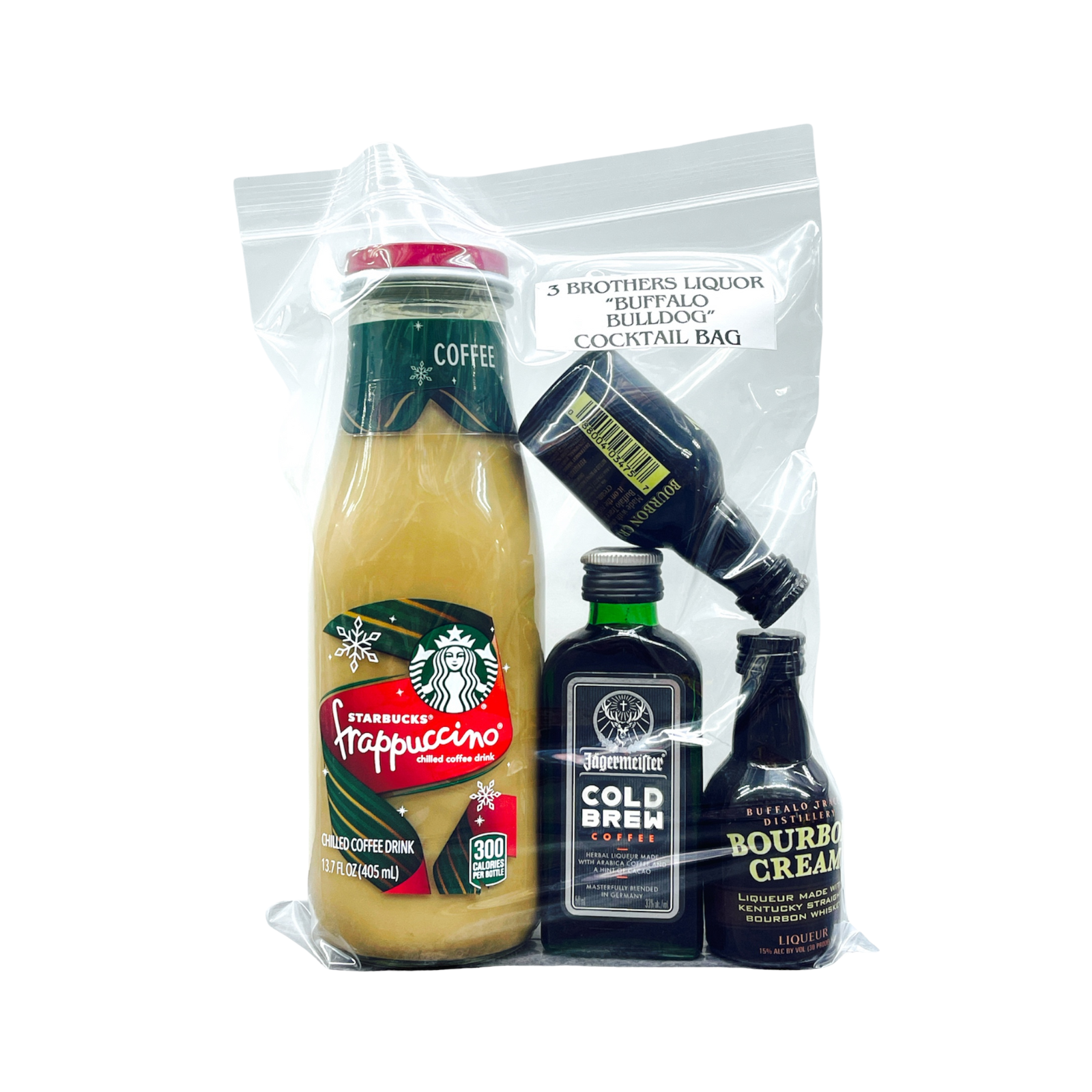 The 3 Brothers Liquor "Buffalo Bulldog" Cocktail Bag offers a convenient way to enjoy a delicious and unique mix of spirits on the go. Our handcrafted cocktail bag contains a perfectly balanced blend of liquors, bitters, and other ingredients, making it easy to enjoy a delicious and unique beverage with friends and family.