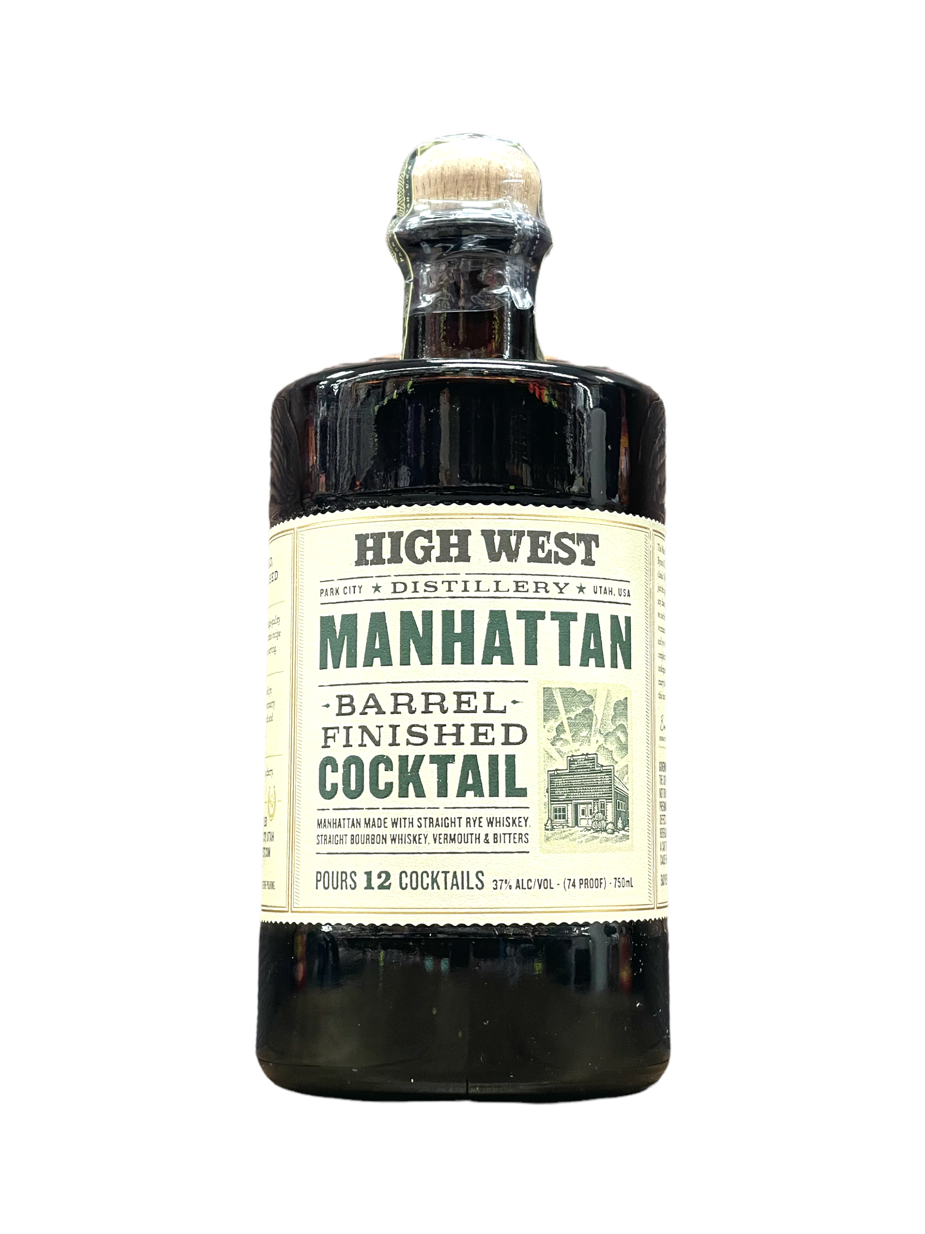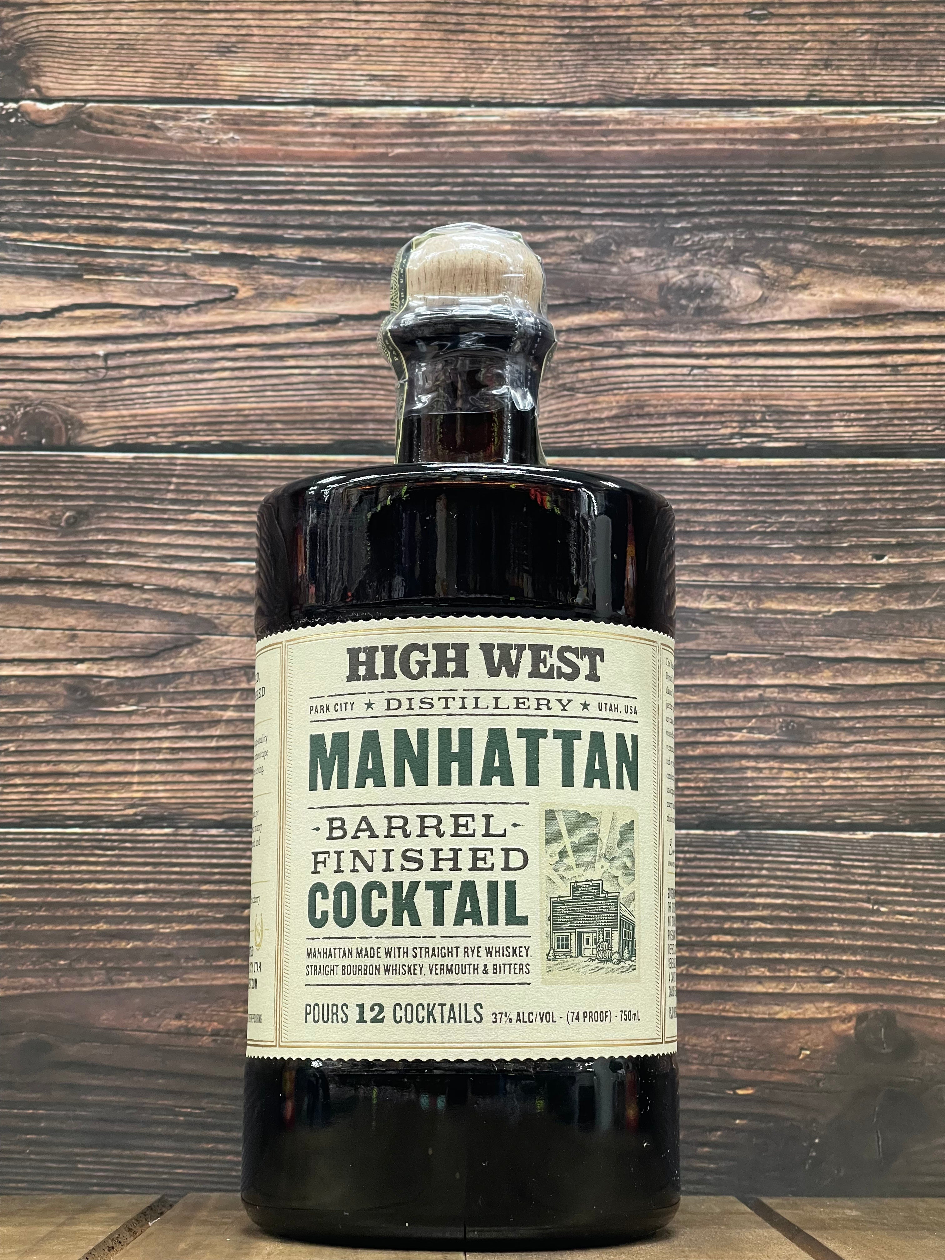 High West Manhattan Barrel Finished Cocktail Made With High West Rye Whiskey. A premium pre-batched cocktail, matured in used rye barrels- allowing the flavors to create a rich, smooth, and well-rounded product.