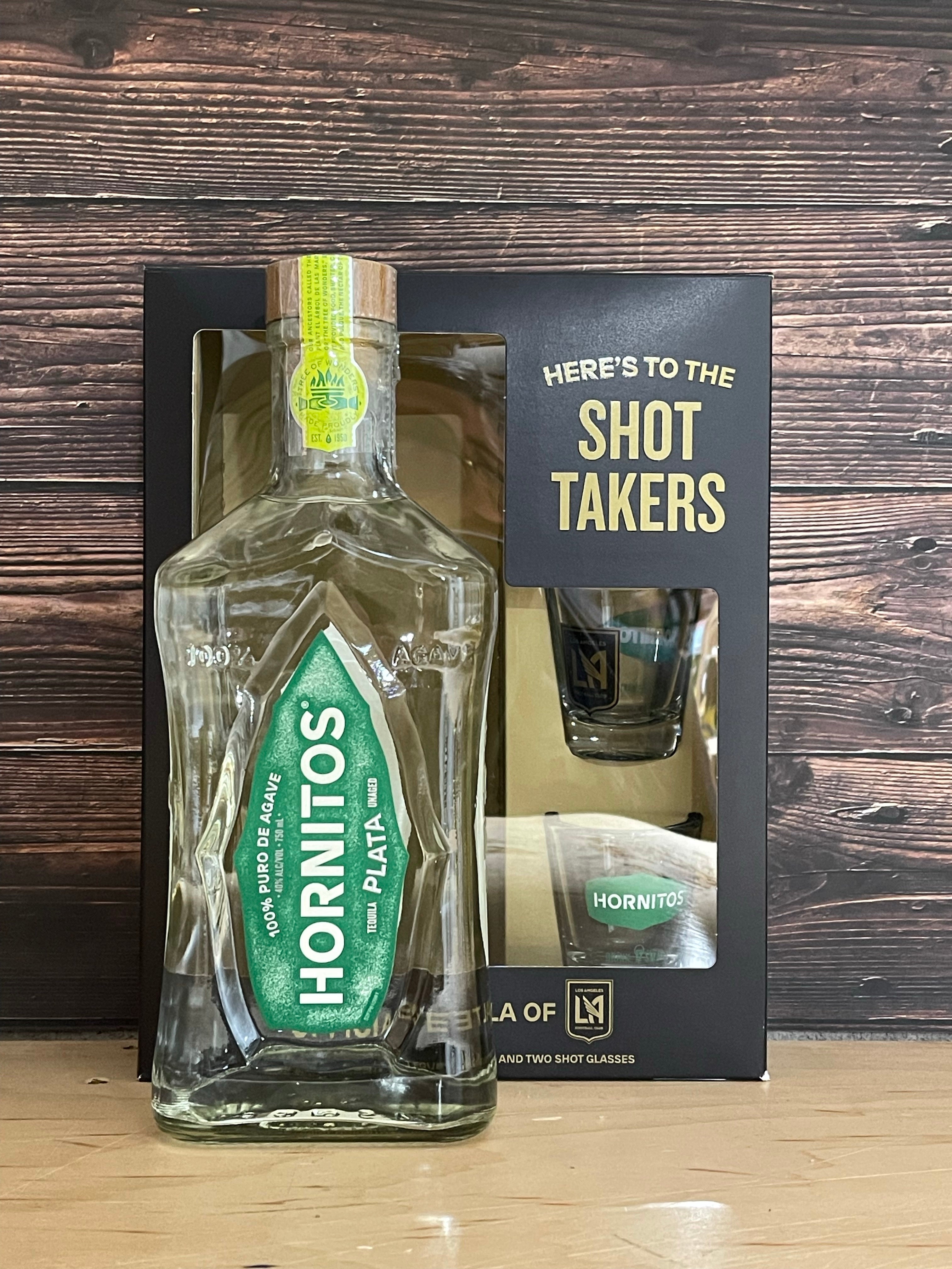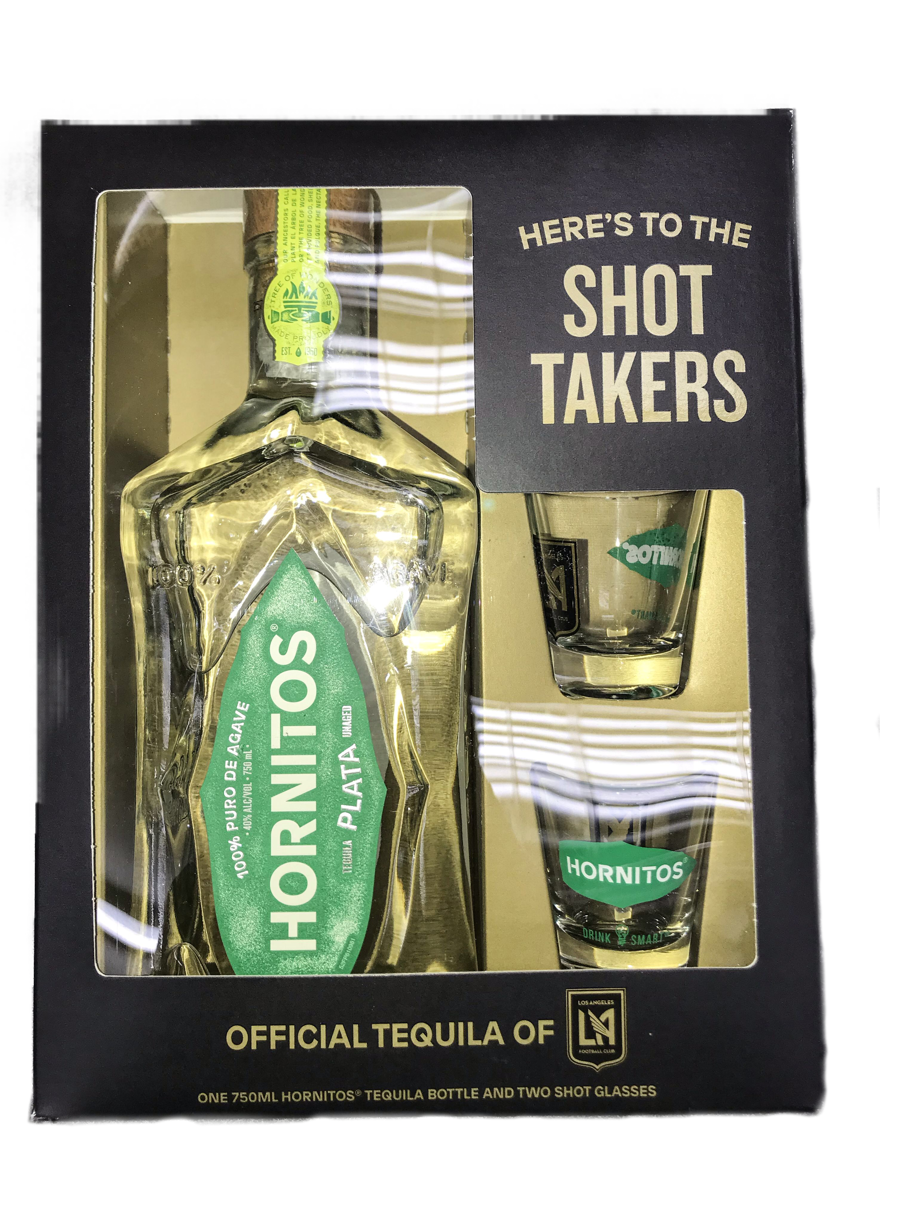 Hornitos "Plata" Tequila W/ 2 Plastic Shot Glasses Gift Set (Official Tequila Of LA Football Club Edition)