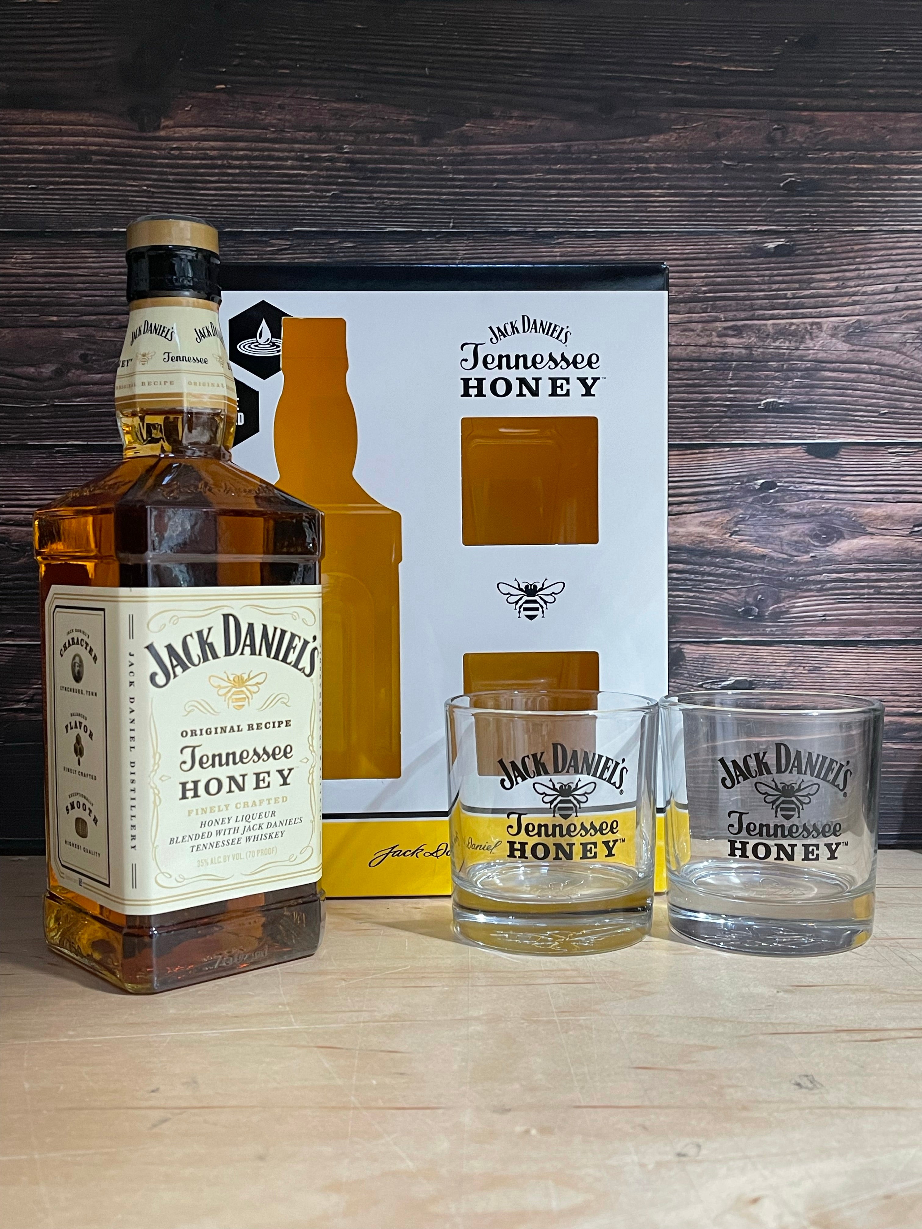 Jack Daniel "Honey" 2 Free Glasses Gift Set Tennesse Whiskey (Limited Edition)