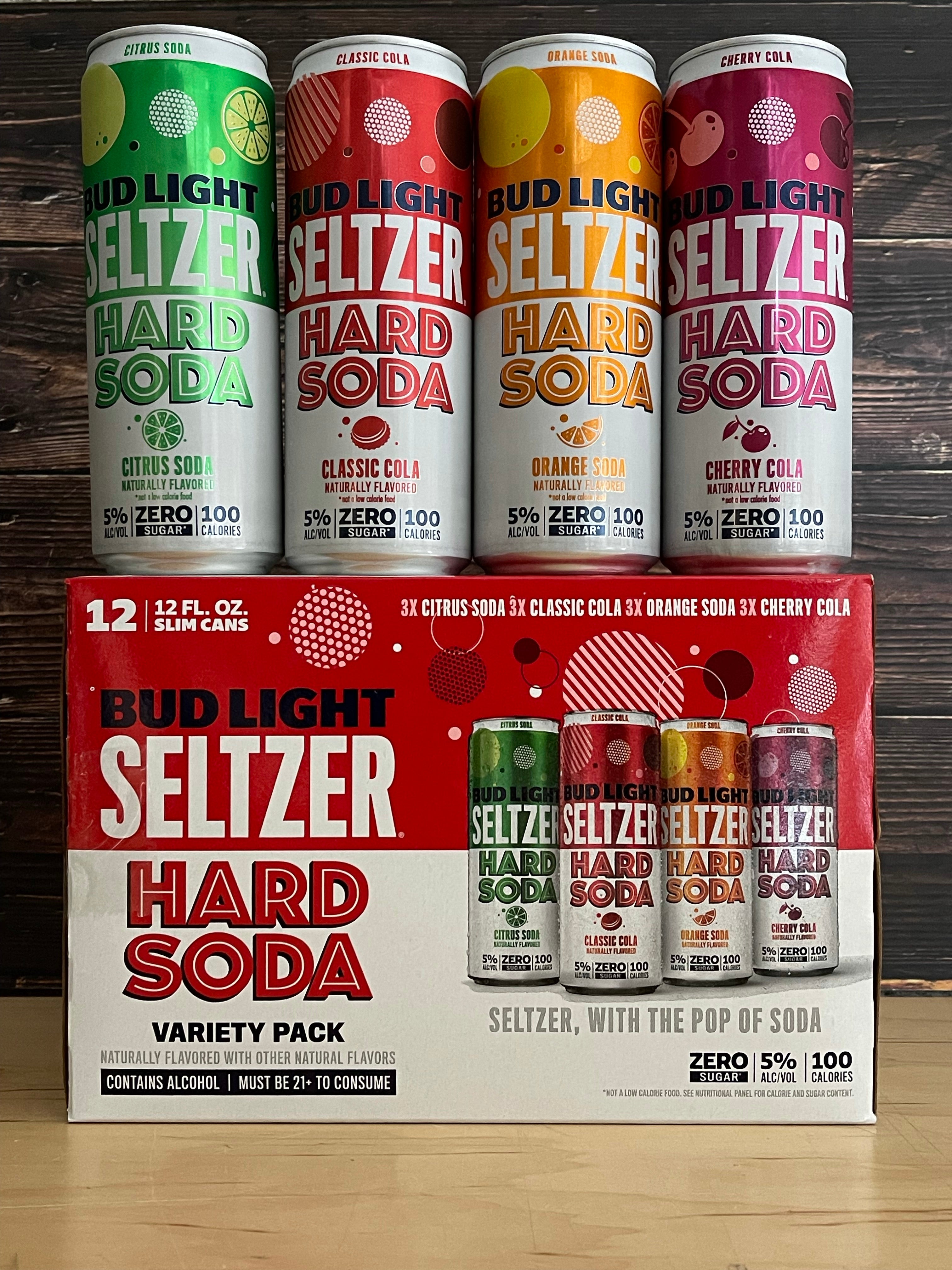 Bud Light Seltzer Hard Soda Variety Pack (12PK) (2022 Limited Release) Bud Light Seltzer Hard Soda Variety Pack W/ Citrus Soda, Classic Cola, Orange Soda, & Cherry Cola.