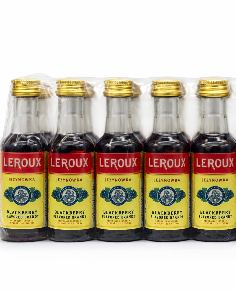 Leroux Blackberry Flavored Brandy delivers a refined taste of ripe blackberries with smooth brandy undertones. This convenient 10-pack of 50ML mini shots offers the perfect pour for sampling, entertaining, or enjoying a measured indulgence. Each shot captures the essence of premium fruit brandy in an elegant, portable format. Ideal for gatherings, gifts, or building your spirits collection with sophisticated flavor.