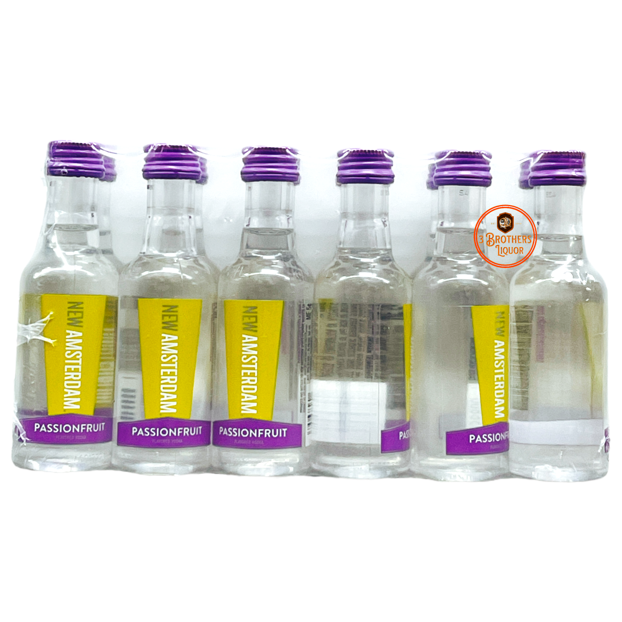 .New Amsterdam Passionfruit Vodka Miniature Shots (12 Of 50ML). New Amsterdam® Passionfruit offers a juicy passionfruit flavor layered with refreshing citrus notes. The vibrant notes of fruit blend perfectly with zesty..