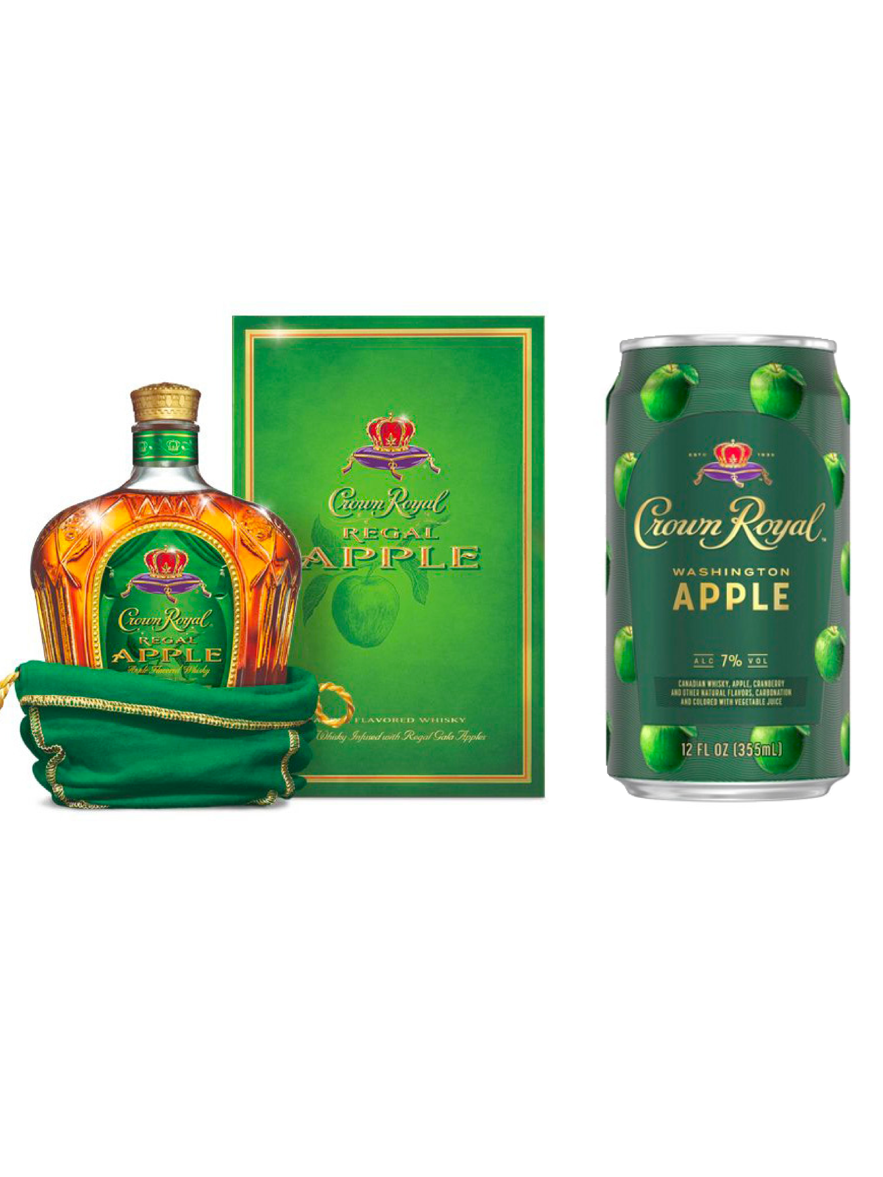 Crown Royal "Apple" + Crown Royal Washington Apple 4-PK Can Whisky Combo (Limited Edition) Crown Royal Apple: Unwind in luxury with a glass of Crown Royal Regal Apple Flavored Whisky. Infused with regal gala apples and hints of caramel and spice, our 70 proof whisky provides a refined, crisp taste.