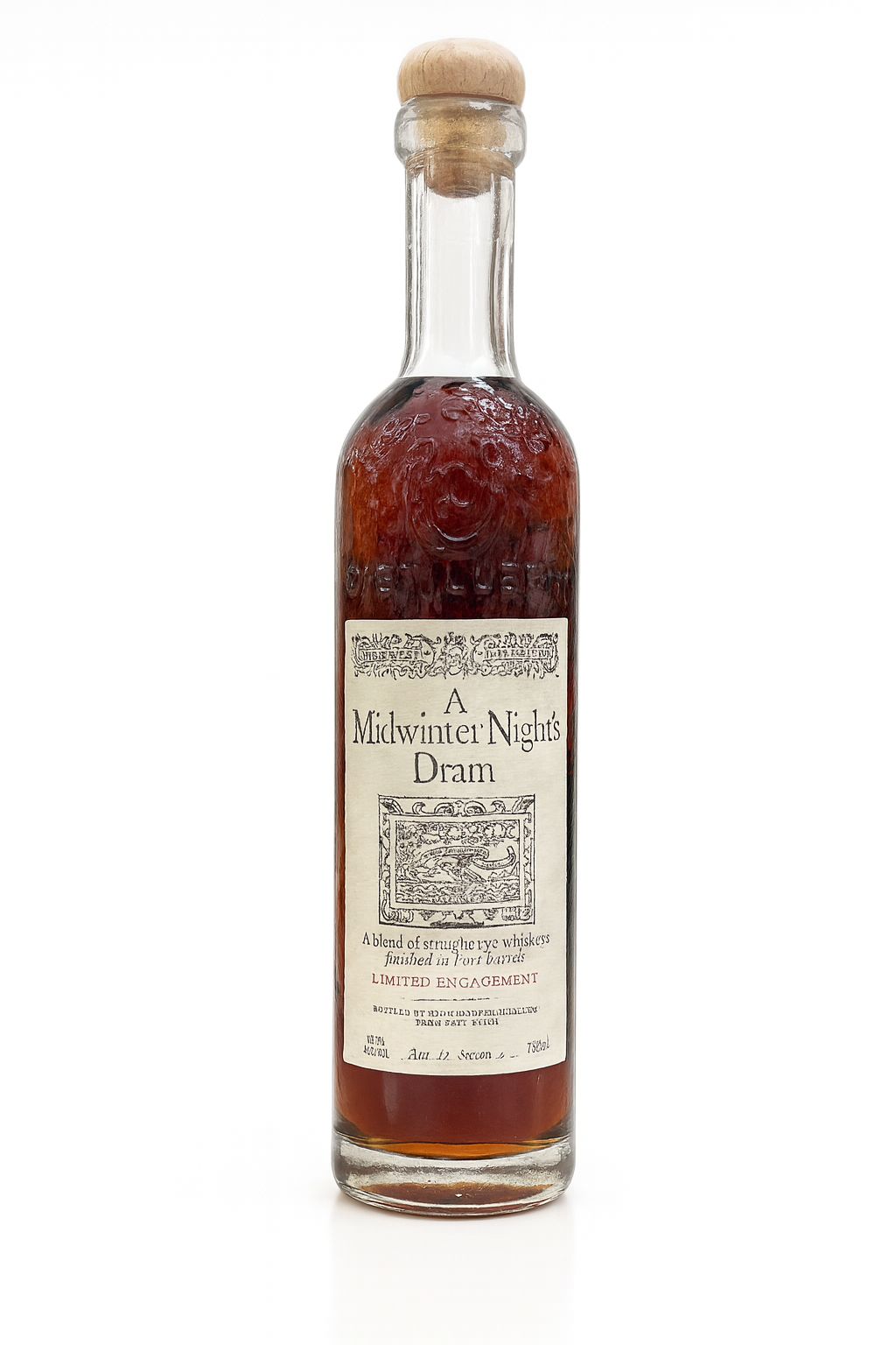 A Midwinter Nights' Dram Straight Rye Whiskey (Act 13, Scene 6) is a masterfully crafted spirit that embodies rich complexity and seasonal character. This distinguished rye whiskey offers layered notes of warming spices, dark fruit, and subtle oak, delivering an elegant and memorable sipping experience. Perfectly balanced, it invites contemplation and appreciation, making it a refined choice for those seeking depth and sophistication in their whiskey collection.