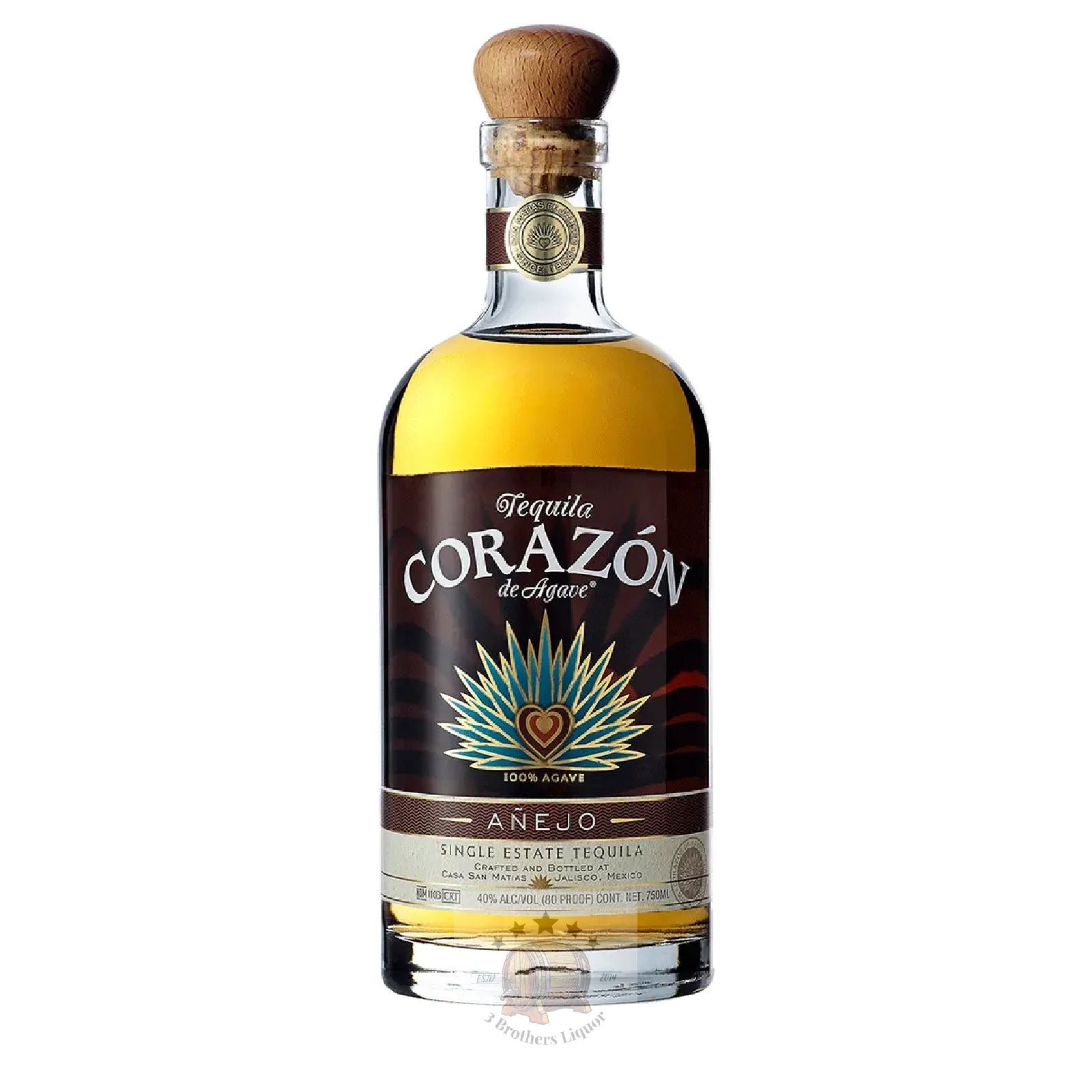 Corazon Anejo Single Estate Tequila By Buffalo Trace. Tequila Corazon de Agave Anejo is aged in American oak barrels. The Anejo is allowed to mature fully by spending 2 years in the barrels, absorbing and capturing the natural essences imparted by the oak.
