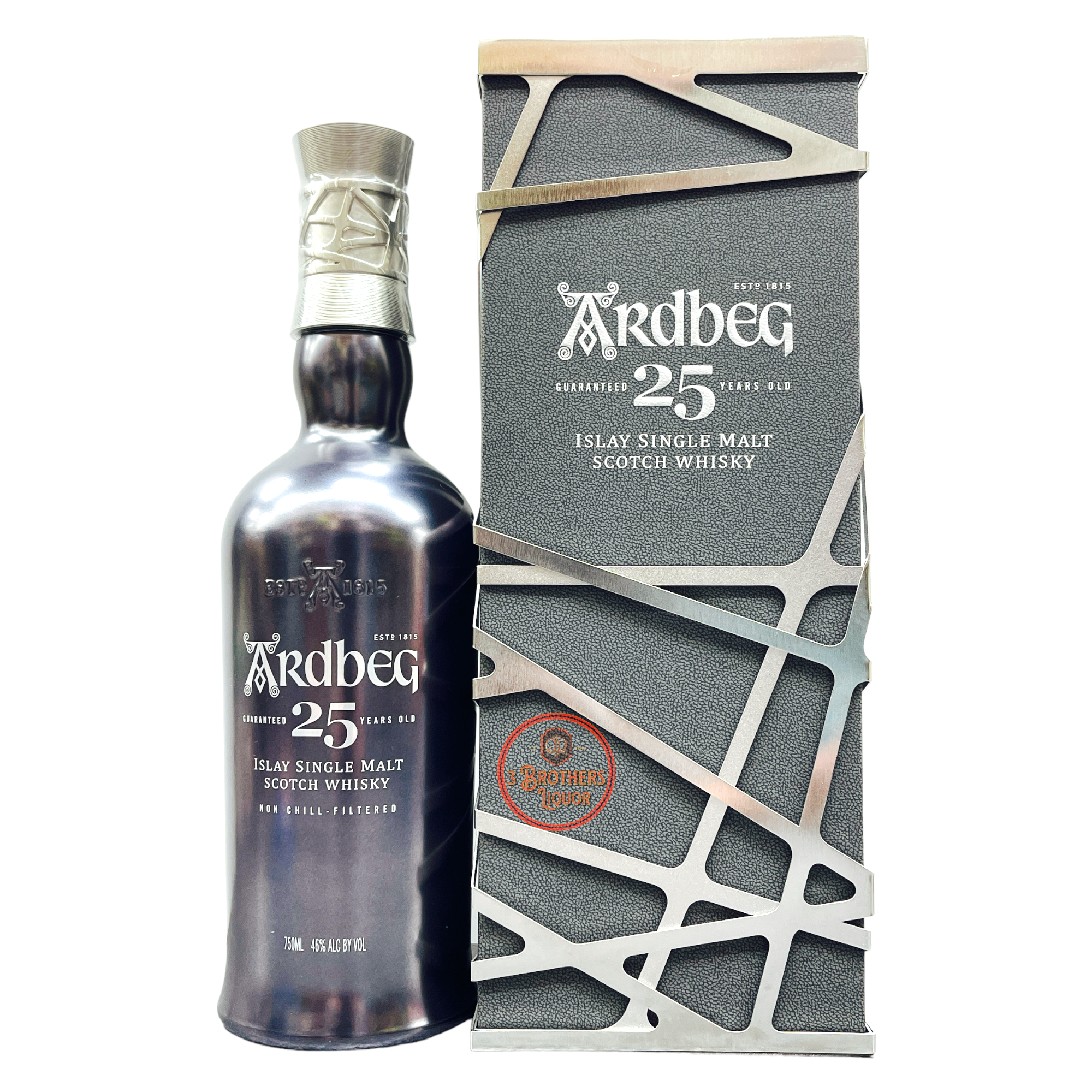 Ardbeg Aged 25 Yrs Islay Single Malt Scotch Whiskey. In an age of Whisky start-ups, Ardbeg is refreshing blast from the past. They have been making Malt Whisky on the same site since 1798. The product was so popular that they ramped up production to commercial levels in 1815.