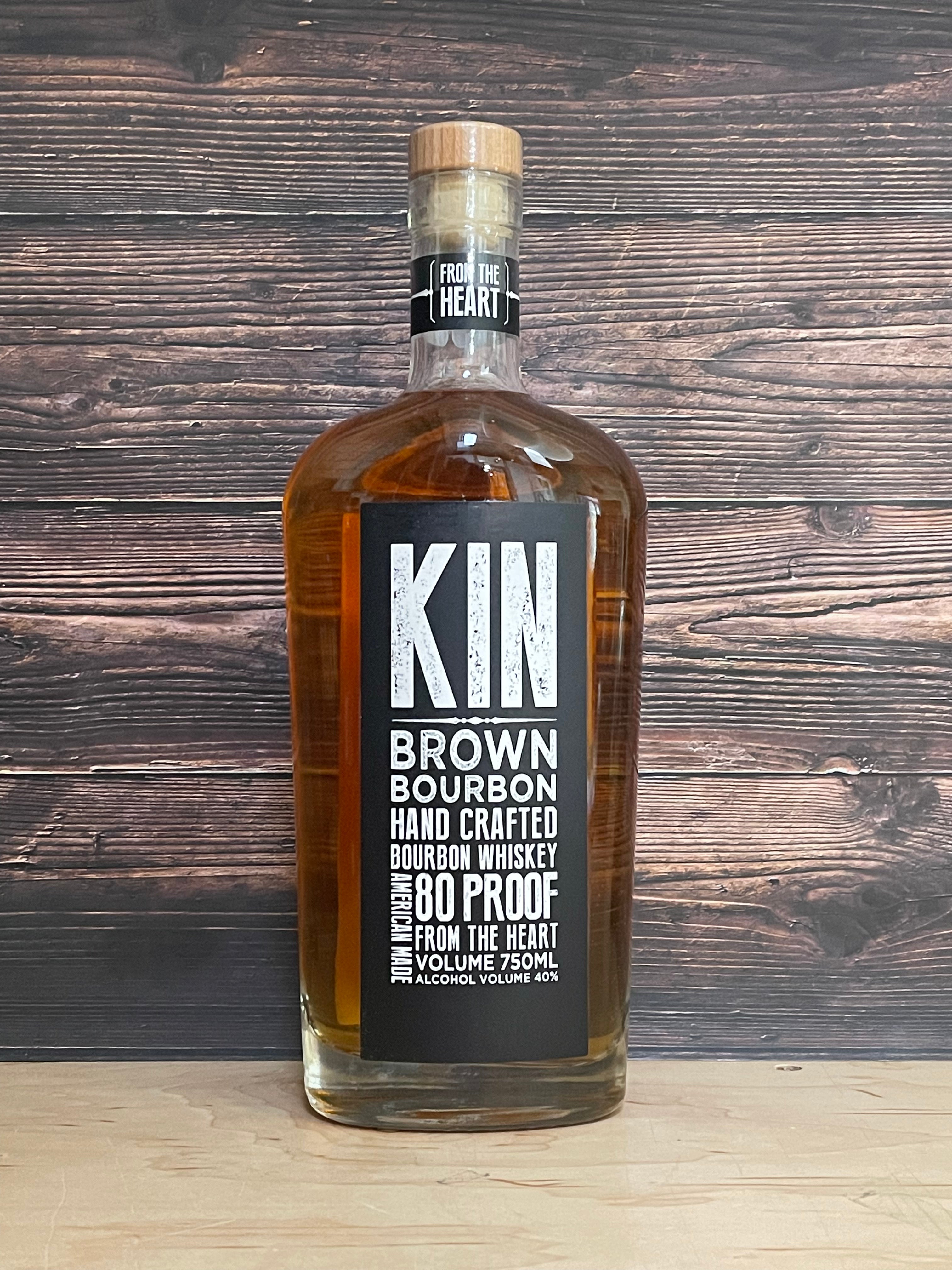Kin Brown Bourbon Hand Crafted Bourbon Whiskey (80 Proof). Hand Crafted American Made From The Heart. Alcohol Volume Of 40%.
