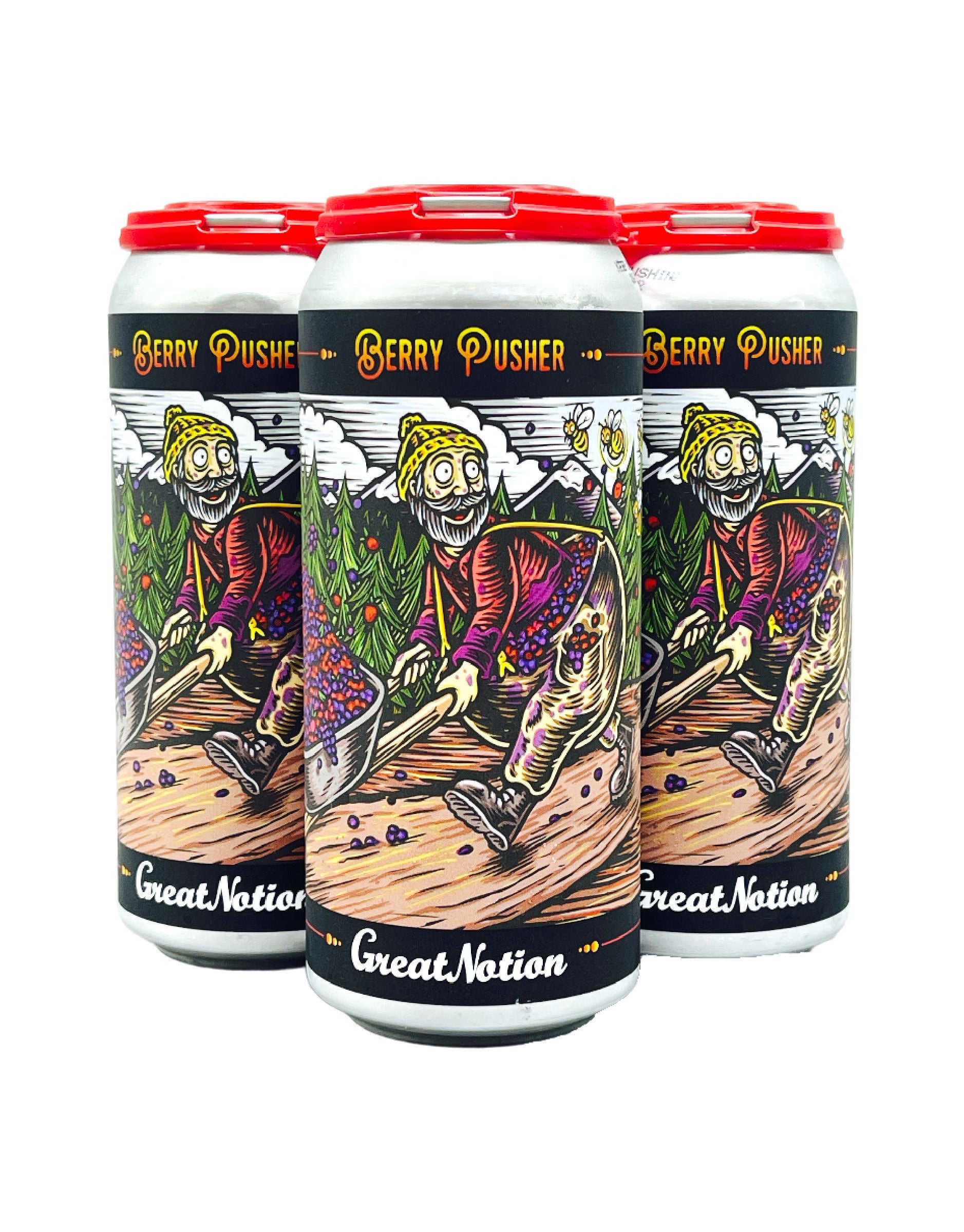 Great Notion Berry Pusher Sour Beer. Fermented with flaked oats and buckets of wildflower honey, strawberry, and blueberry puree. This one will have you coming back for more.