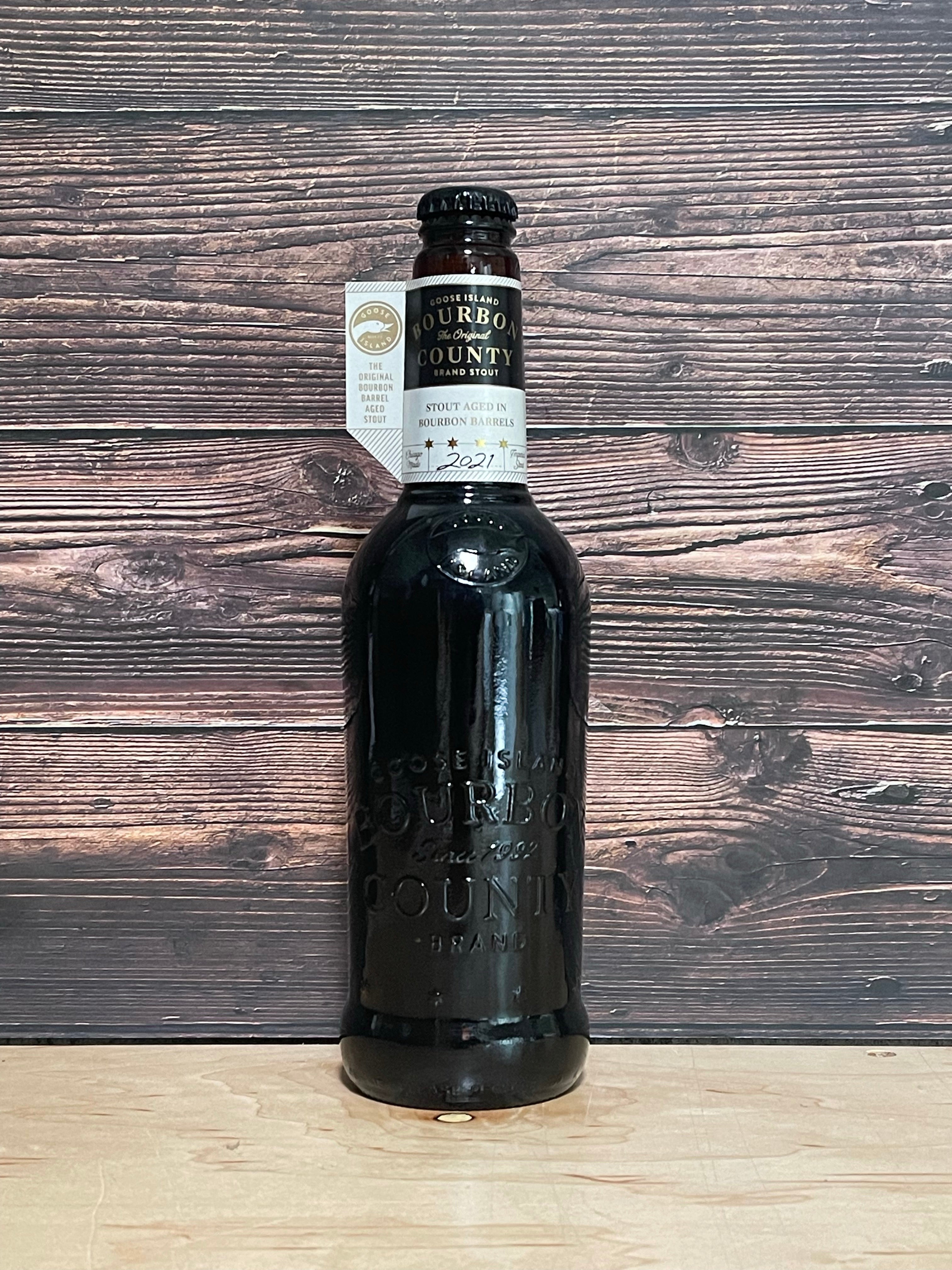 Goose Island Bourbon County Stout Beer (2021 Edition). Our rich Imperial Stout is blended from a mix of bourbon barrels from distilleries such as Heaven Hill, Wild Turkey, and Buffalo Trace, each aged in freshly emptied bourbon barrels for 8-14 months. Expect flavors of chocolate and vanilla, oak, whiskey, and molasses, followed by caramel, berry fruit, and almond.