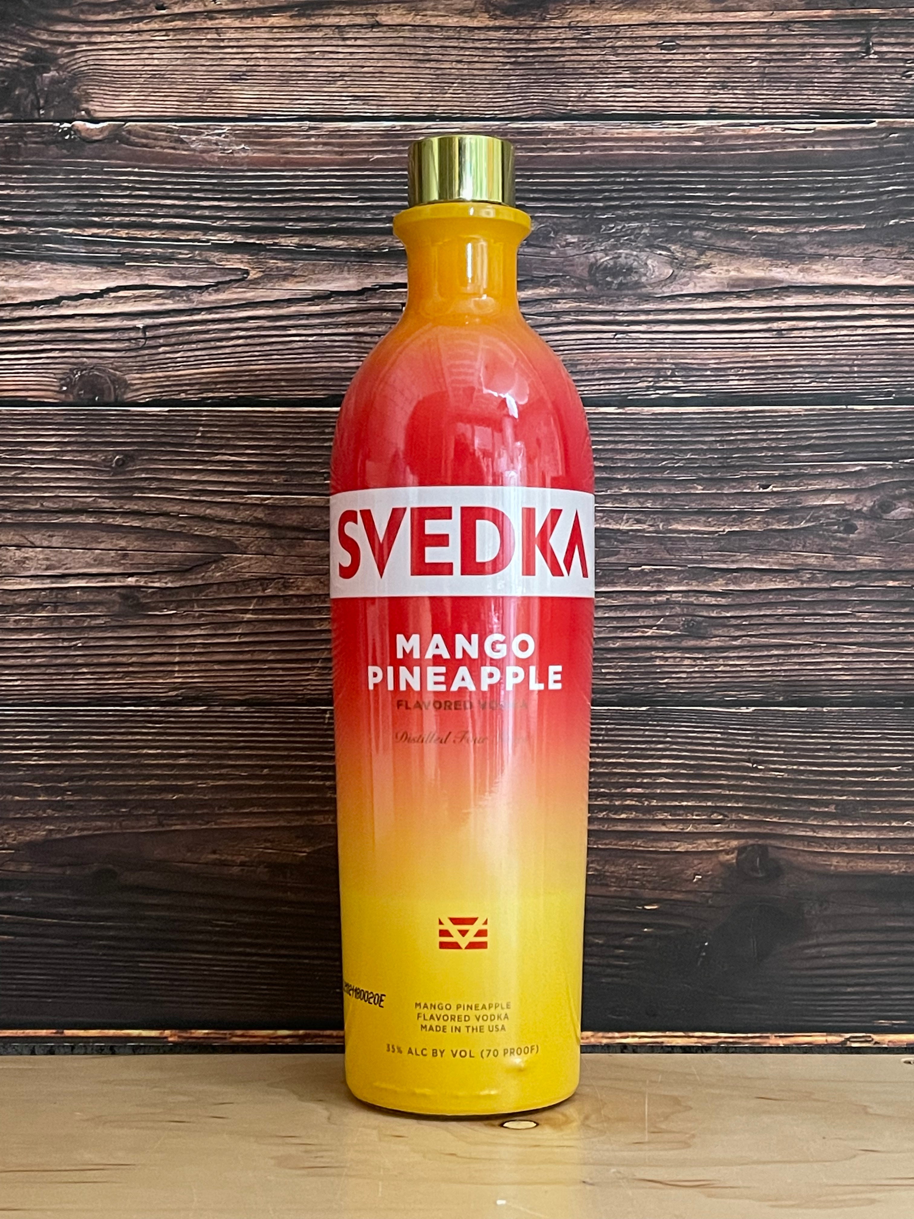Svedka Mango Pineapple Flavoured Swedish Vodka. SVEDKA Mango Pineapple Flavored Vodka delivers a tropical blend of ripe Filipino mango and juicy pineapple flavors. This tropical vodka is delicious on its own or in countless vodka cocktails.