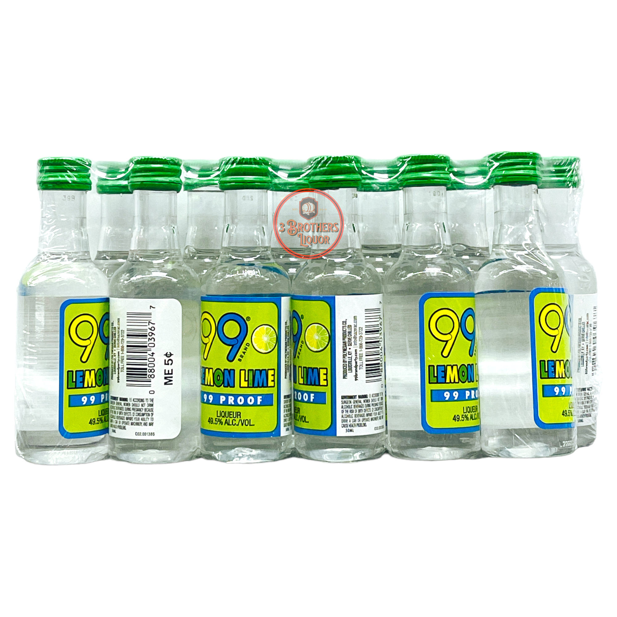 99 Brand Proof Lemon Lime Liqueur 50ML Shots. 99 Brand is a 99 proof full flavor shot. It combines bold flavors with high proof, giving consumers a great tasting intense shot. Big, "explosive" tastes that capture the essence of consumer favorites - extreme flavor in every shot.