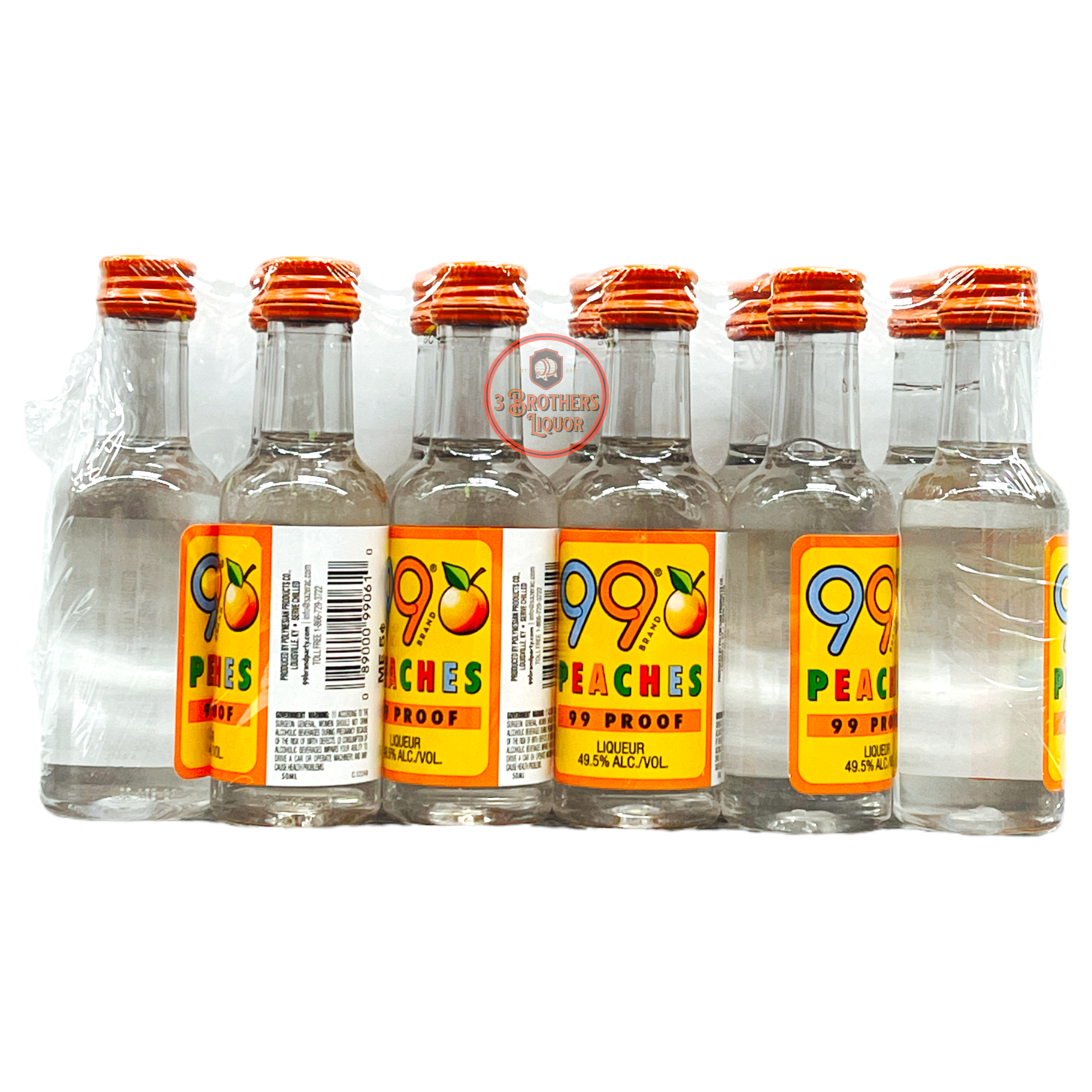 99 Brand Proof Peaches Liqueur 50ML Shots. 99 Brand is a 99 proof full flavor shot. It combines bold flavors with high proof, giving consumers a great tasting intense shot. Big, "explosive" tastes that capture the essence of consumer favorites - extreme flavor in every shot.