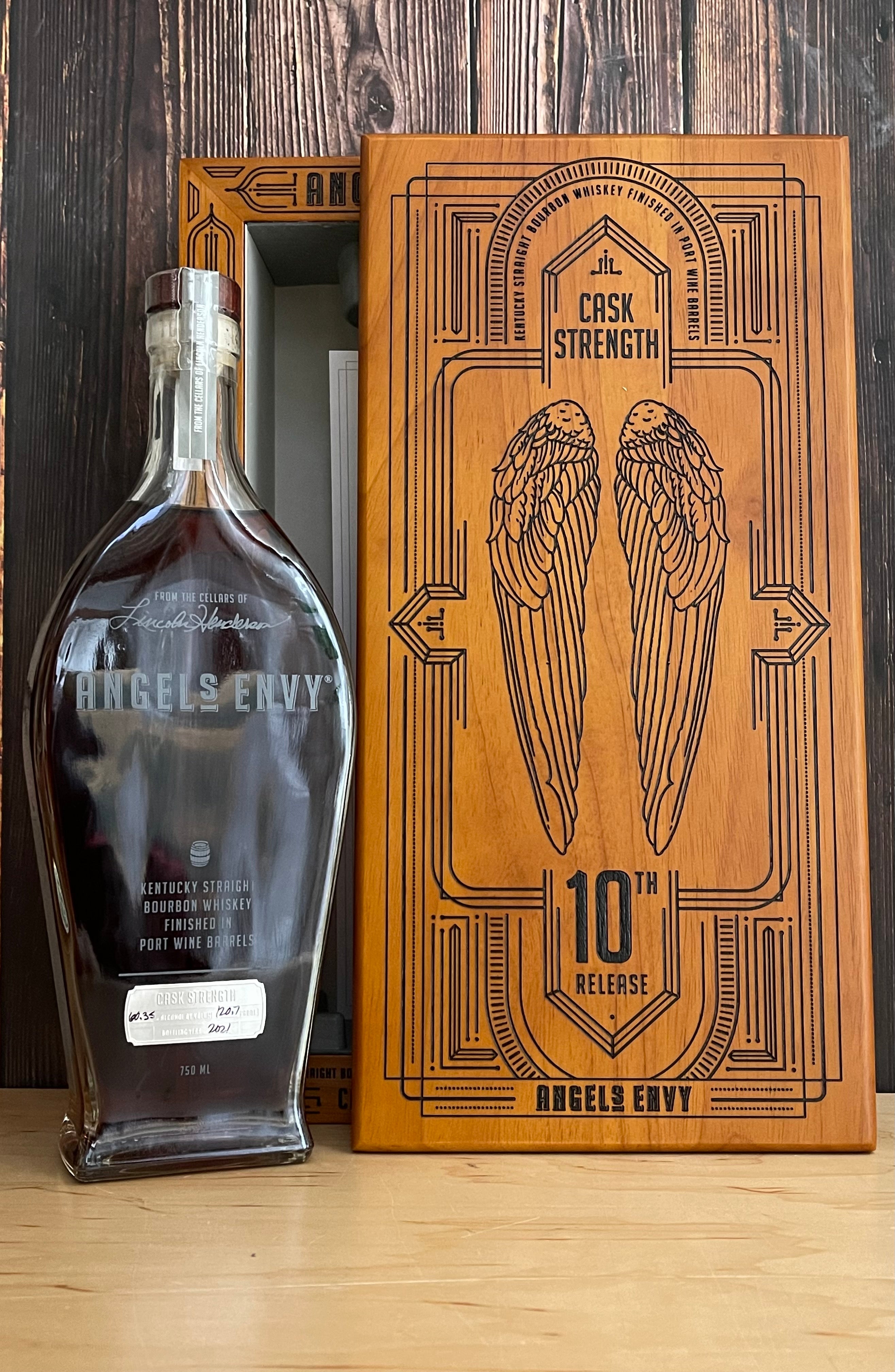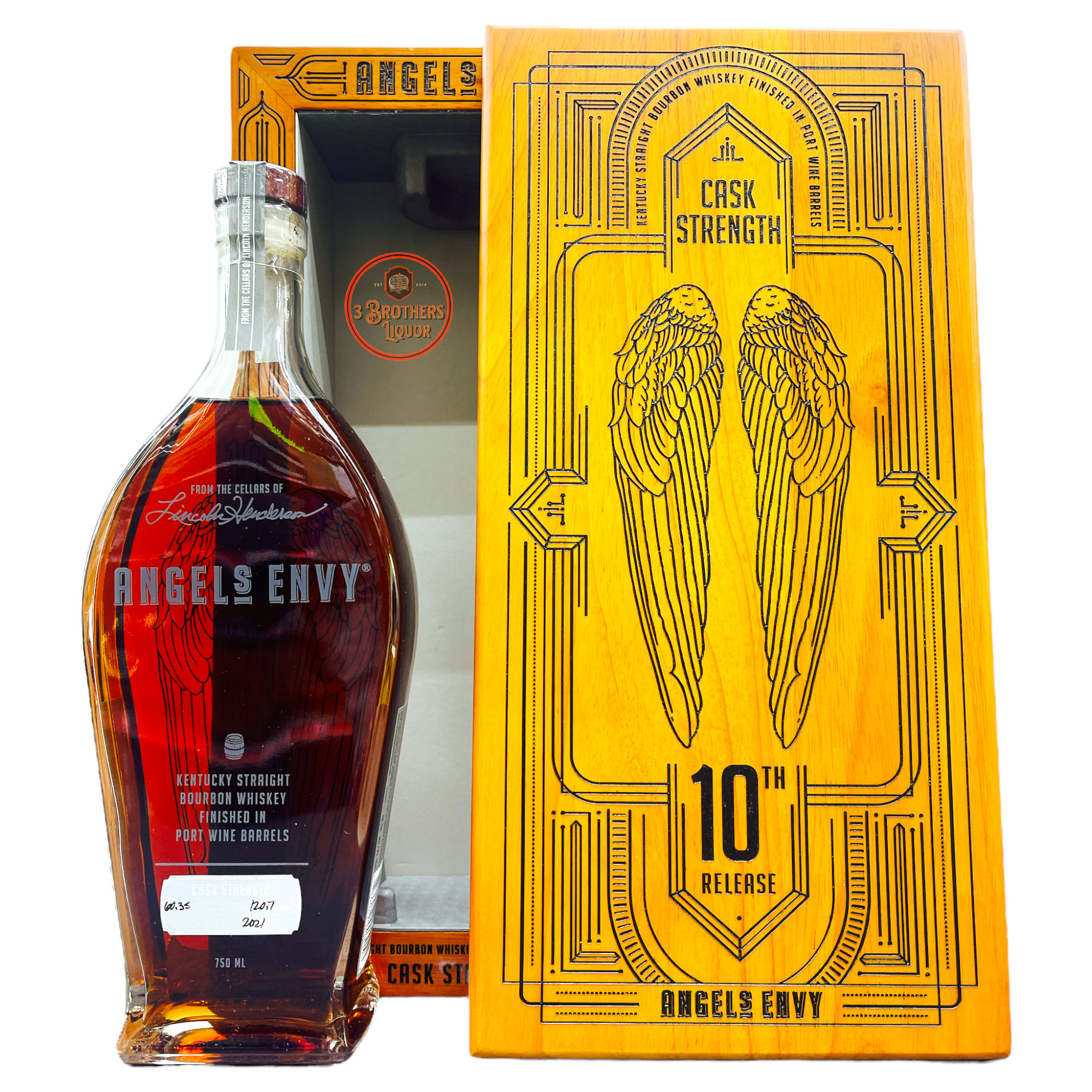 Angels Envy 10th Release Cask Strength Bourbon Whiskey (2021 Edition). Angel’s Envy Cask Strength Bourbon 2021 Limited Edition - Angel’s Envy Cask Strength Bourbon 2021 Limited Edition is complex on the nose, with notes of peach and cherry accompanied by hints of brandy, tea and honey.
