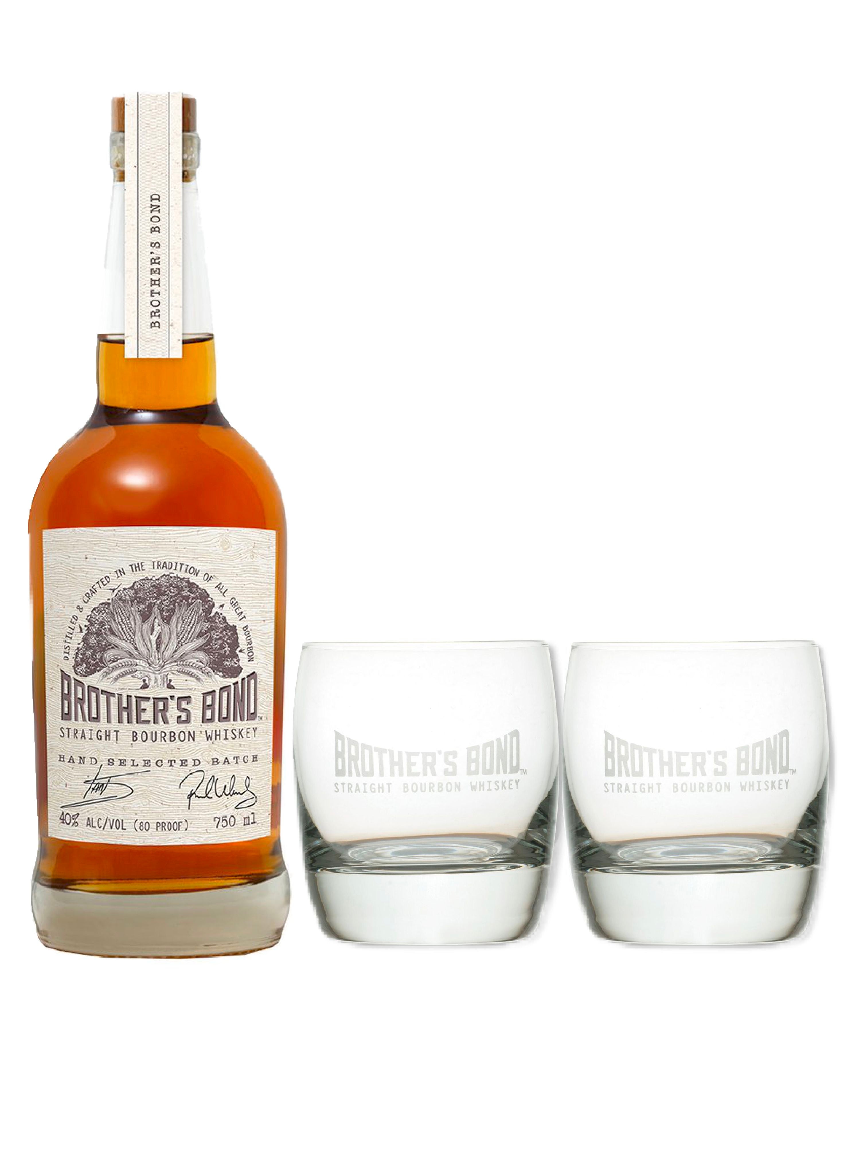 Brother's Bond Straight Bourbon Whiskey W/ 2 Brother's Bond Rock Glasses Set (Limited Edition)