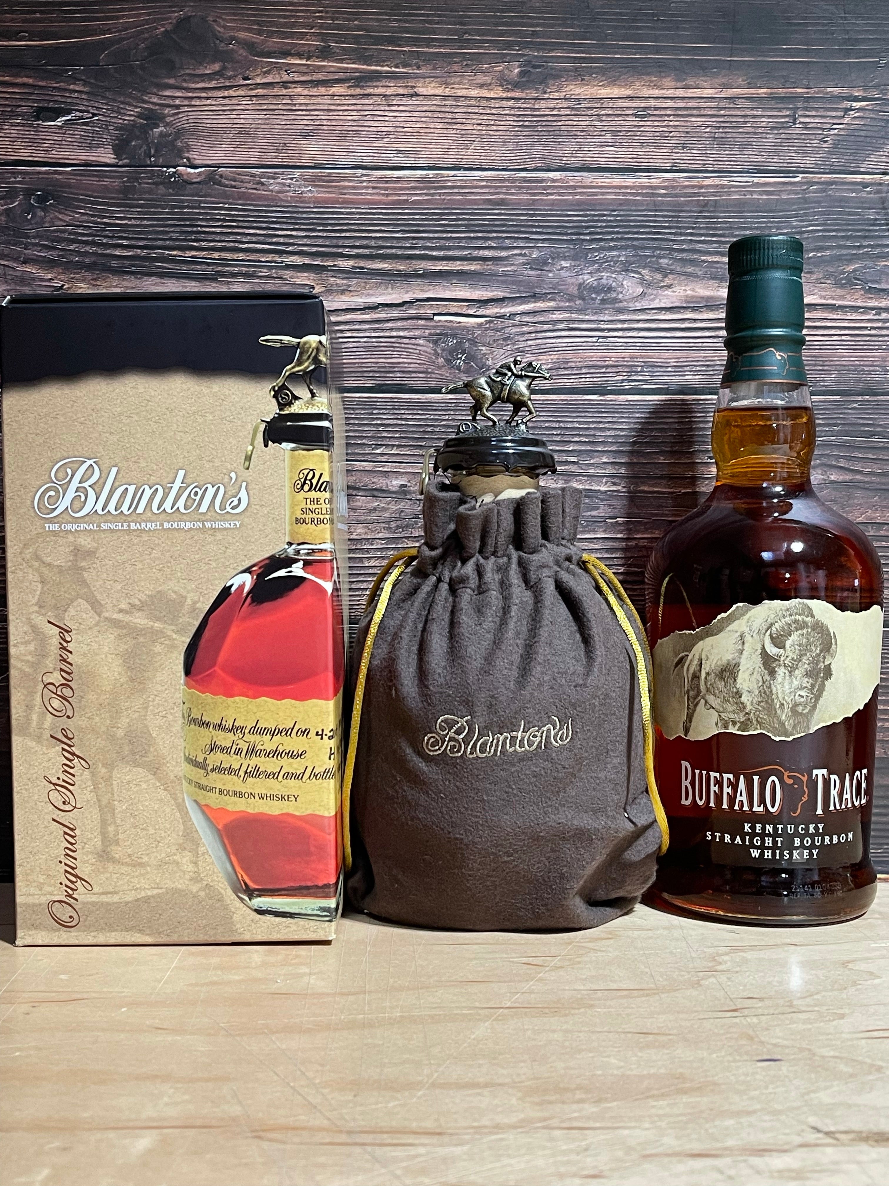 Buffalo Trace & Blanton’s Original Bourbon Whiskey Bundle Set.