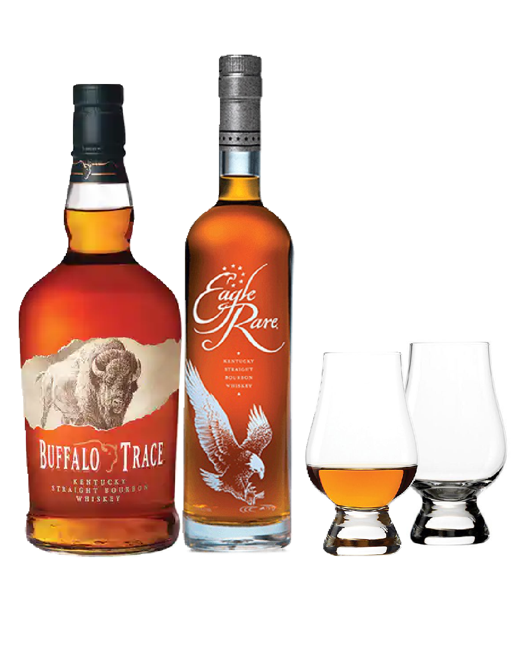 Buffalo Trace & Eagle Rare Bourbon Whiskey W/ Glencairn Glass Set Bundle, This bourbon, which is aged for a minimum of eight years, is the flagship product of America’s oldest continuously operating distillery.