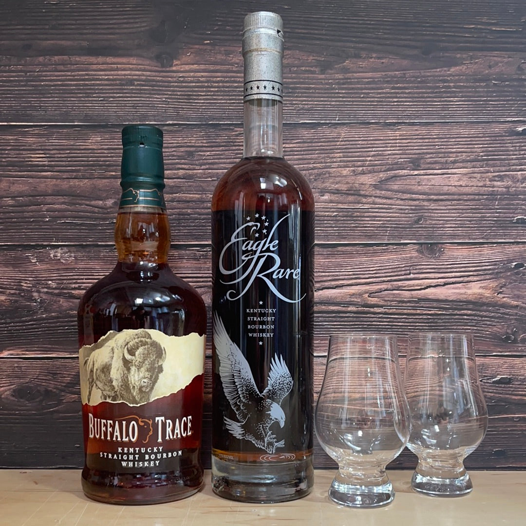 Buffalo Trace & Eagle Rare Bourbon Whiskey W/ Glencairn Glass Set Bundle