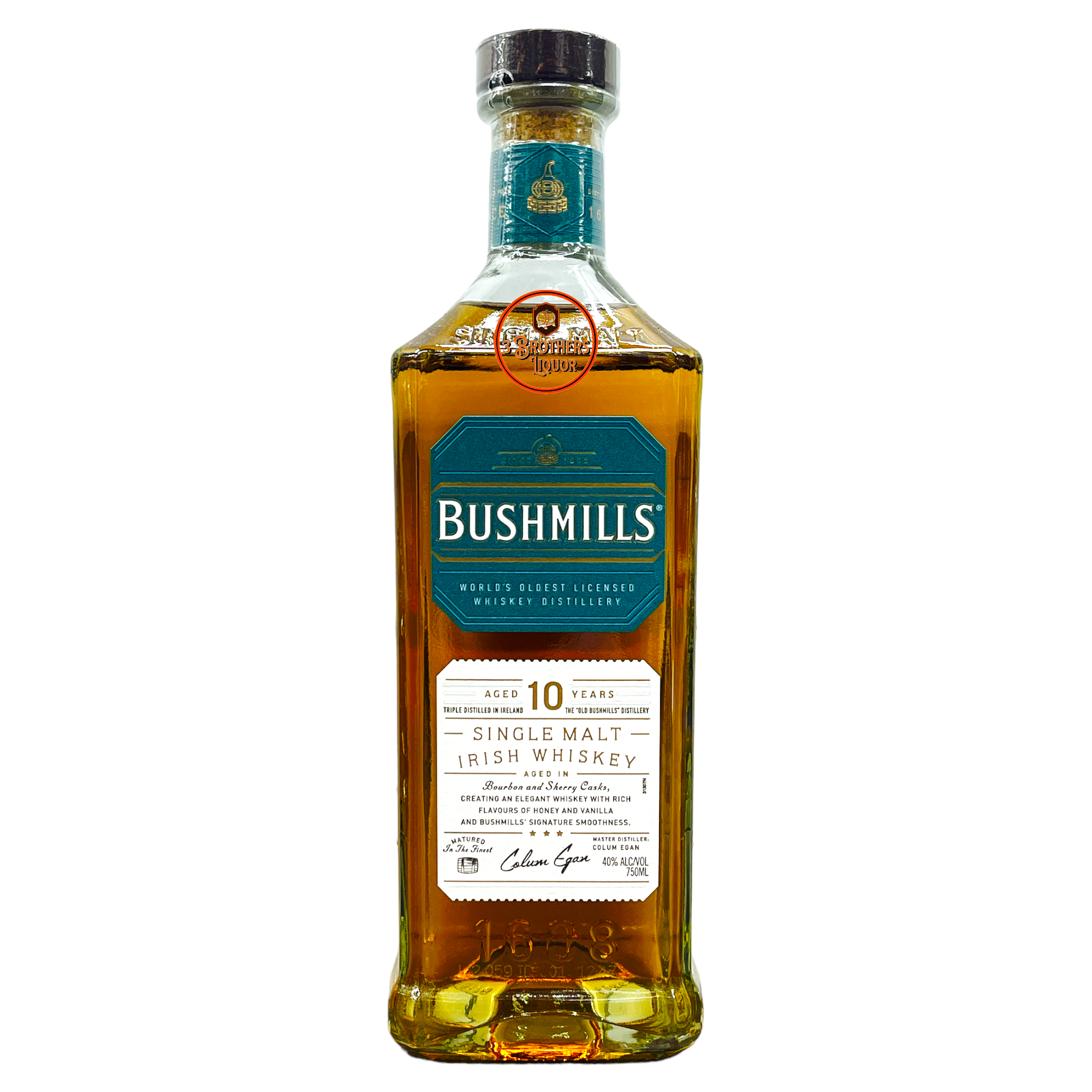 Bushmills Aged 10 Years Single Malt Irish Whiskey. This Bushmills Single Malt Whiskey 10 year old is triple distilled from 100% malted barley and matured for at least 10 years in seasoned bourbon barrels.