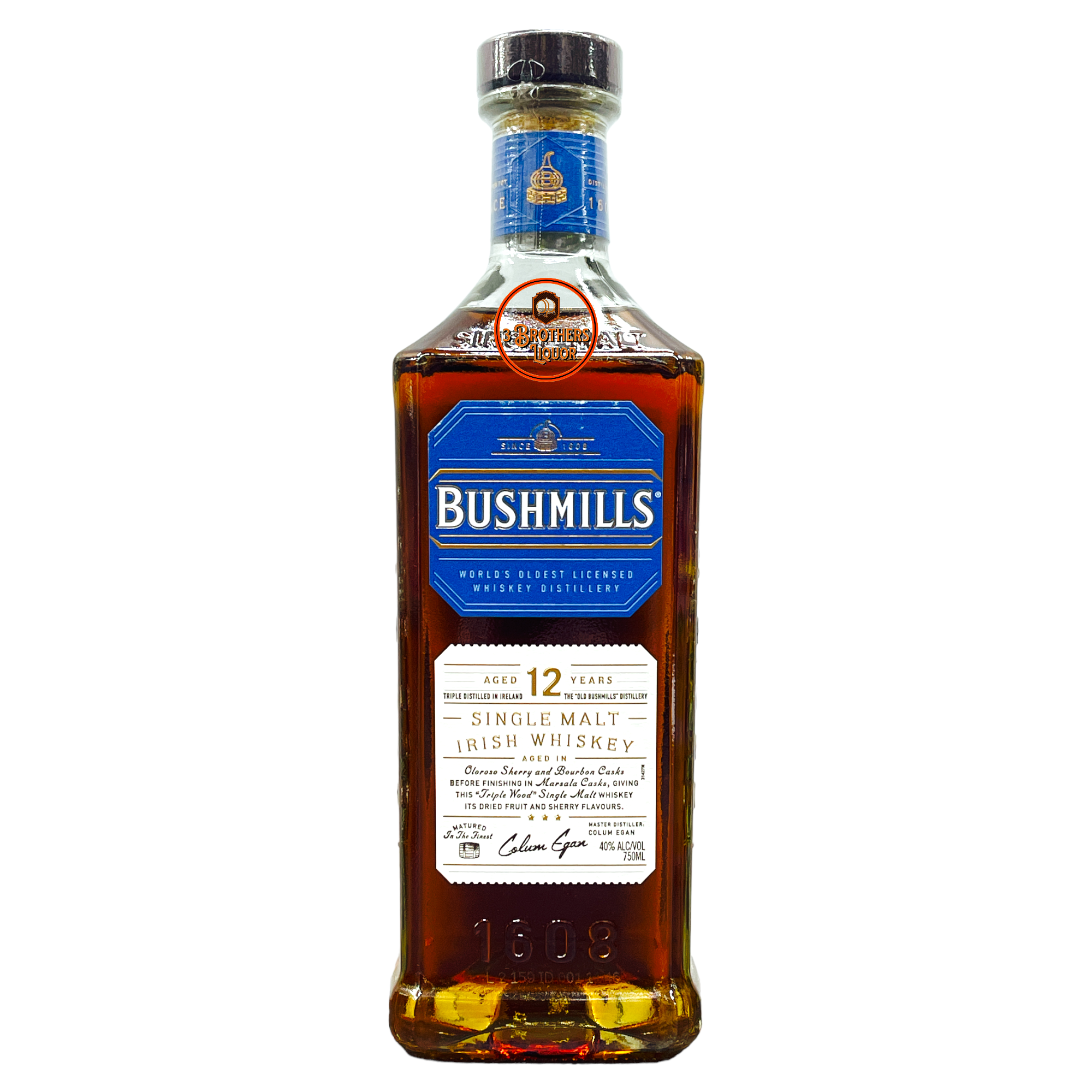 Bushmills Aged 12 Years Single Malt Irish Whiskey. Ireland- Bushmills Distillery Reserve is a special 12yr old release that's previously only been made available at the Bushmills Distillery itself. Matured mainly in former Spanish Olorosy sherry casks which lend a deep amber color and wonderful dried fruit aromas to this whiskey.