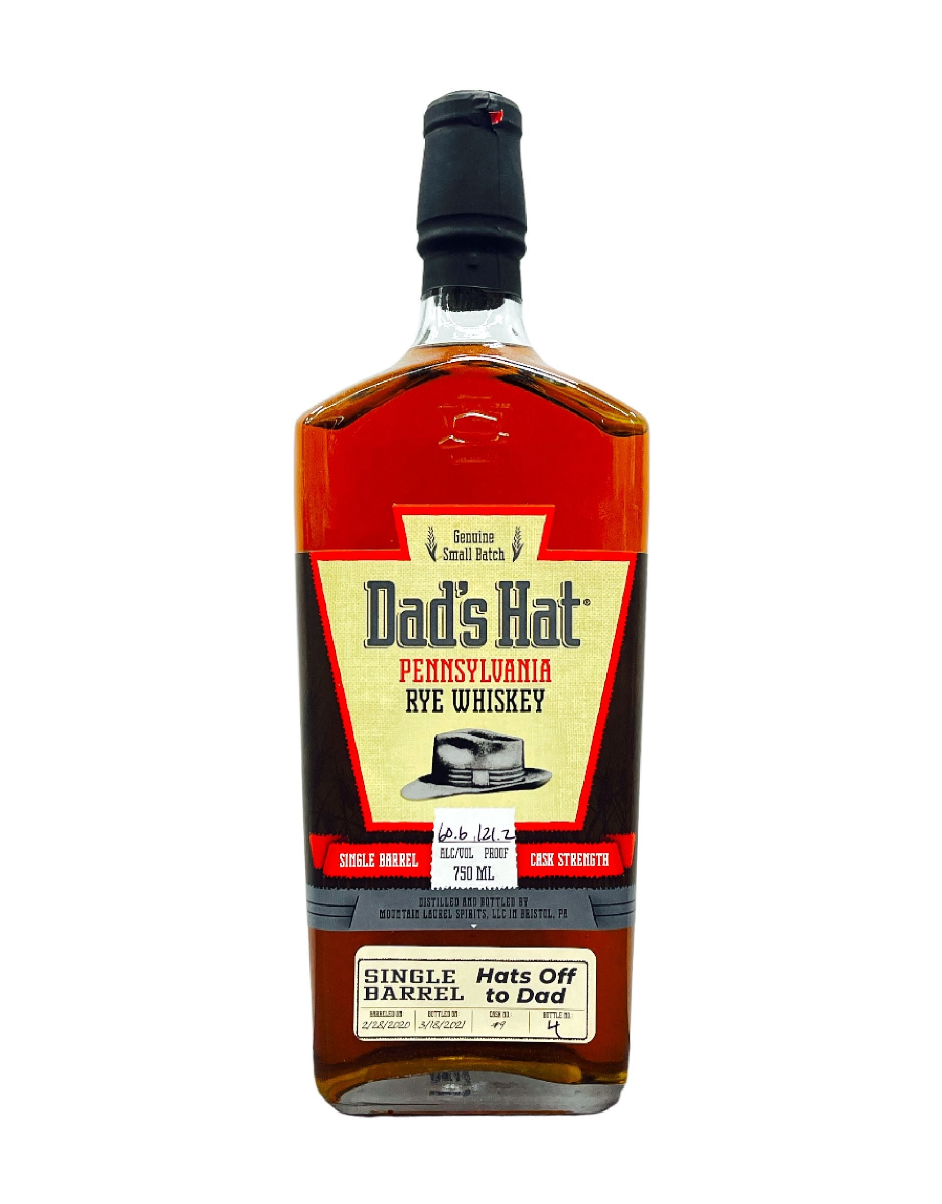Dad's Hat Single Barrel Hats Off To Dad Rye Whiskey. Just in time for a Father’s Day delivery we have a limited release single barrel from Dad’s Hat. Their latest expression, Hats off to Dad, is a small batch, cask strength rye whiskey distilled and bottled in Pennsylvania and pouring out at 121.2 proof.
