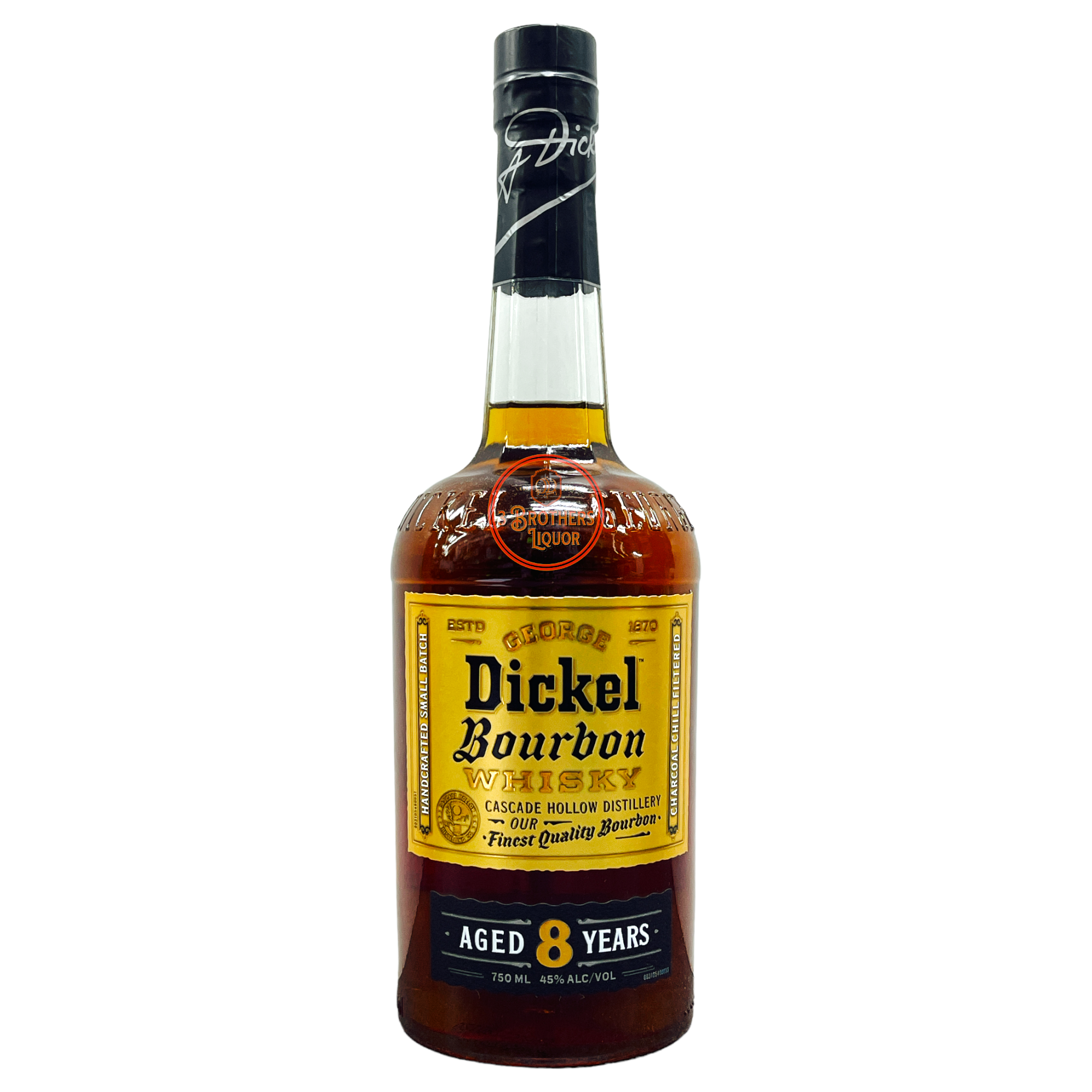 George Dickel Aged 8 Straight Bourbon Whiskey. This Bourbon is the latest release from the Cascade Hollow Distillery. Aged for 8 years in charred oak barrels, this bourbon offers a complex yet approachable flavor palette with perfectly balanced, vanilla, oak, fruit and spice.