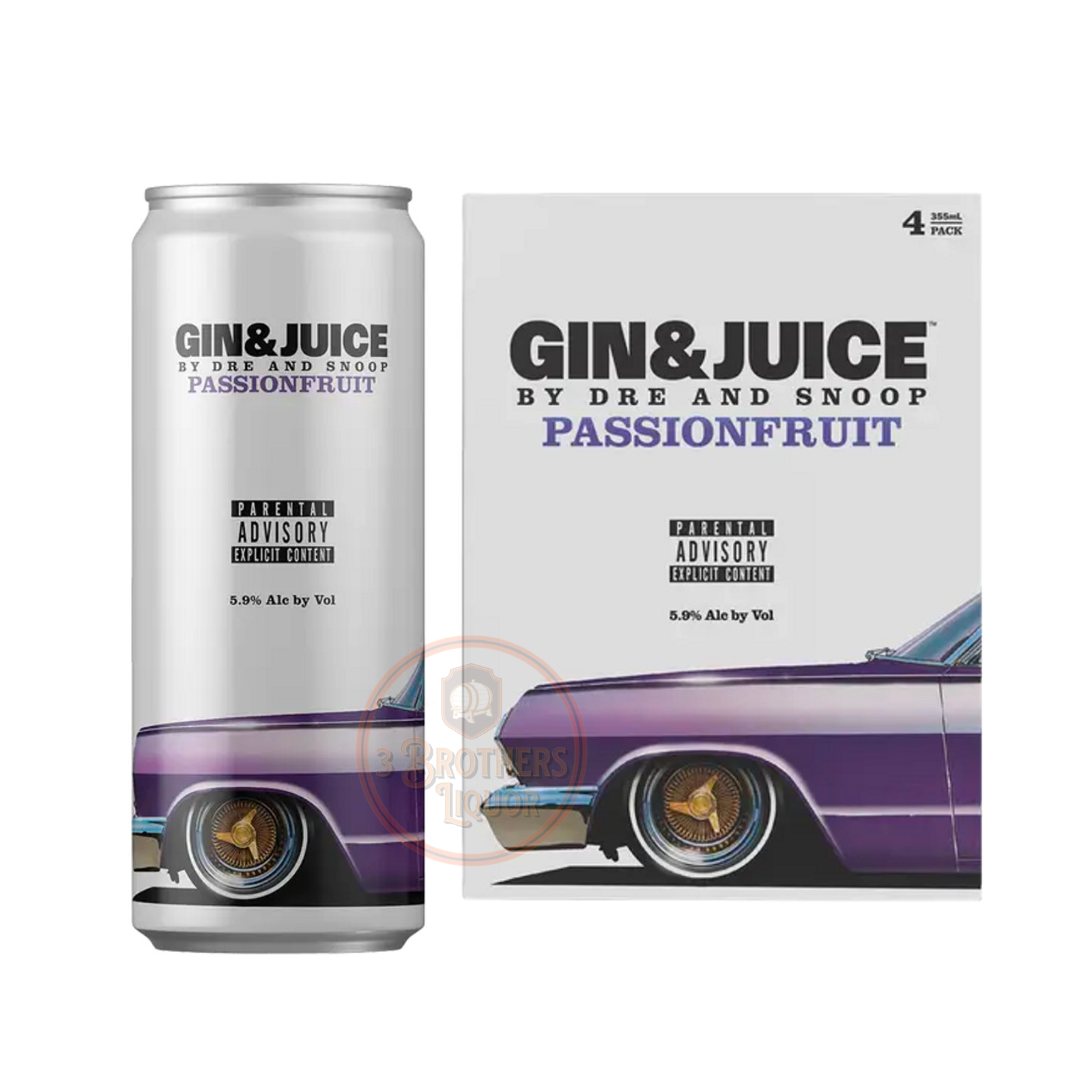 Experience the ultimate indulgence with our Gin & Juice Passionfruit RTD Cocktail. Crafted by the legendary Dr. Dre and Snoop Dogg, this premium drink offers a taste of luxury and sophistication. Enjoy the perfect blend of gin, juice, and passionfruit in each convenient 4-pack can. Elevate your drinking experience today.