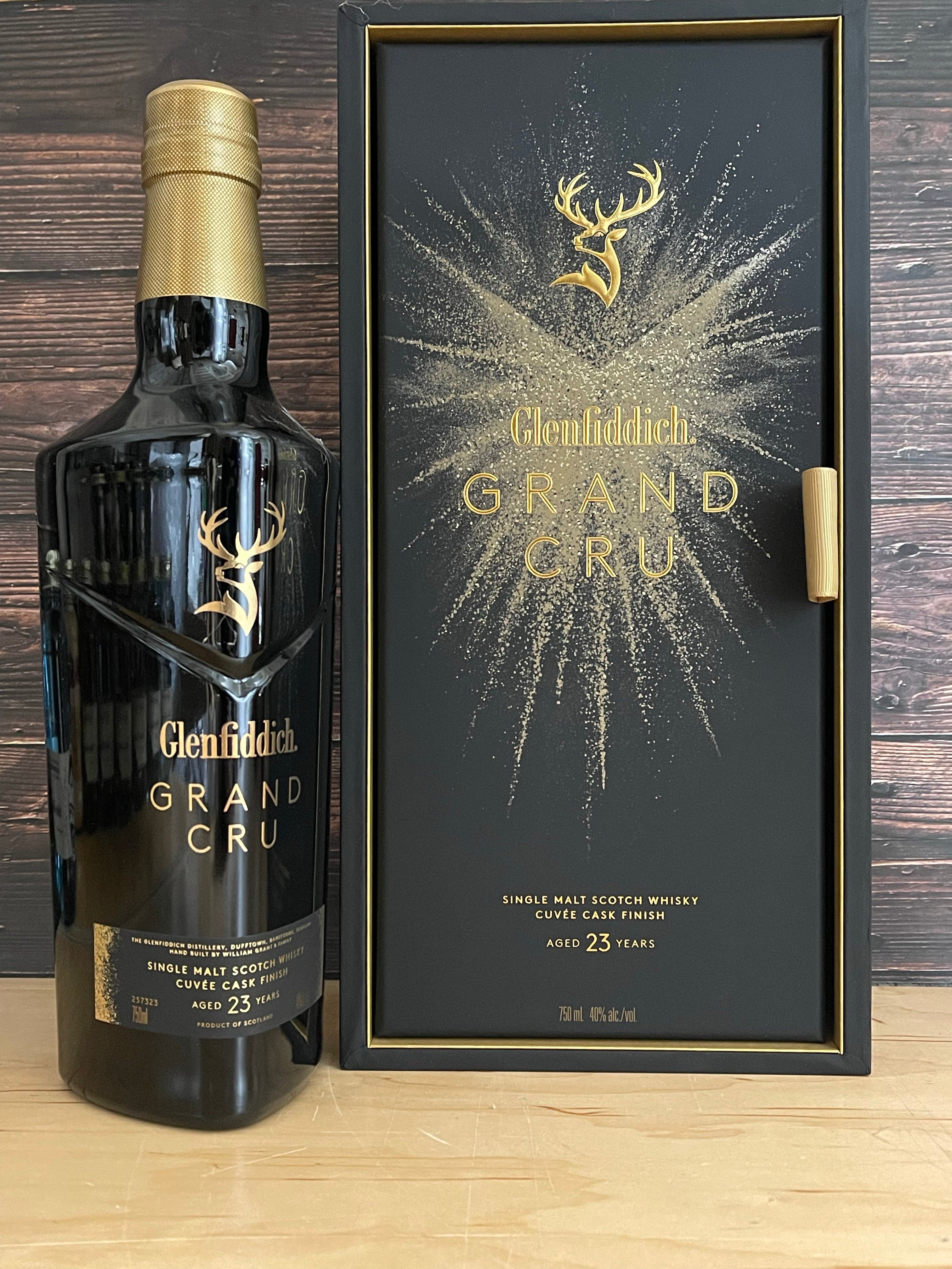 Glenfiddich Aged 23 Years Grand Cru Single Malt Scotch Whiskey W/Gift Box.The famous Glenfiddich Distillery was founded by Scotch Whisky legend William Grant in 1887 with used equipment acquired from the Cardhu Distillery. Remaining in the hands of the Grant family to this day, Glenfiddich is the biggest selling single malt whisky worldwide and can be found in quality pubs from Indonesia and Beijing to Morocco and Los Angeles. Not only are they a top producer of premium single malt by volume, they are a much honored and loved go-to Speyside of choice for millions of raving fans.