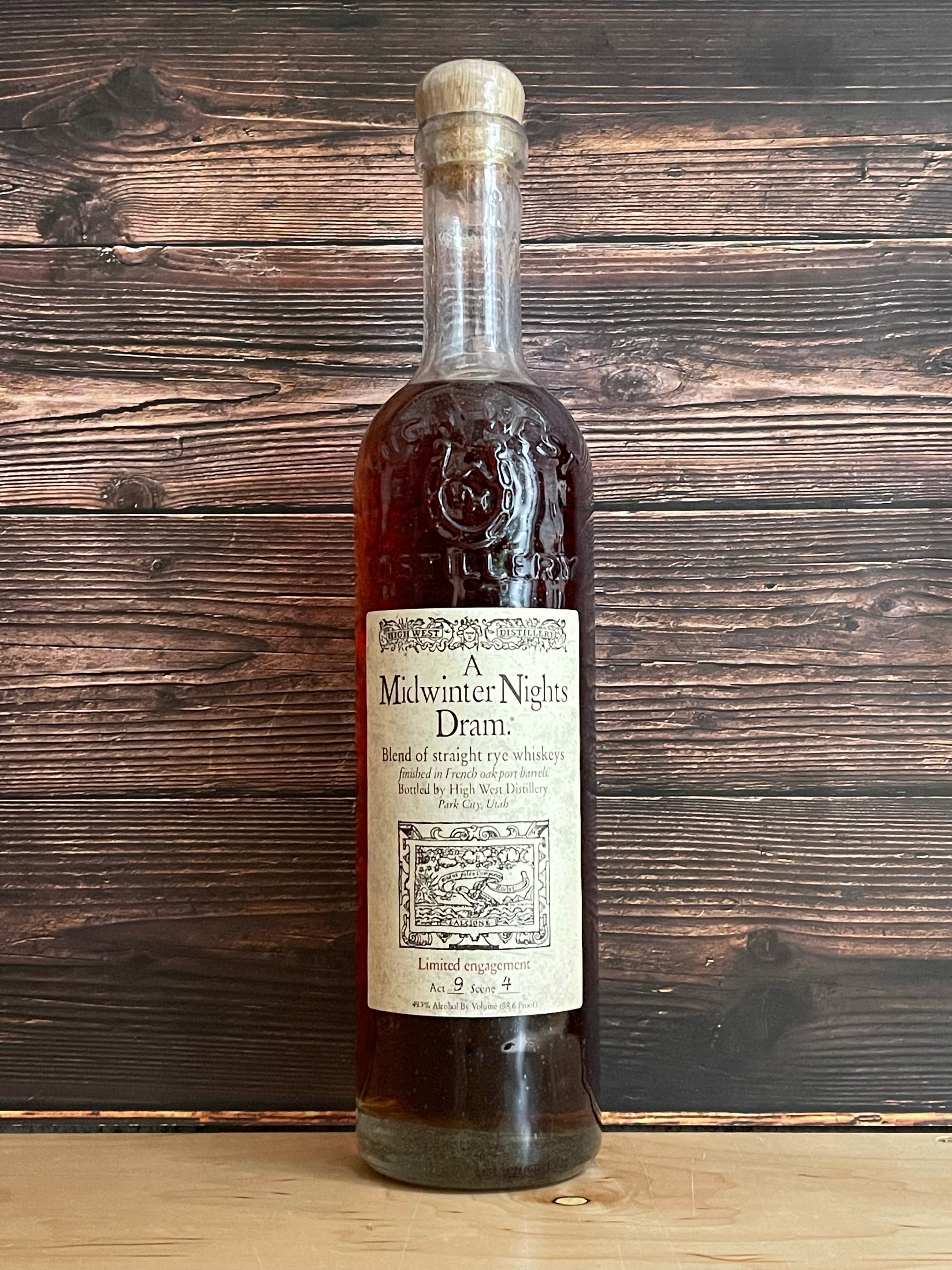 High West A Midwinter Nights Dram Rye Whiskey. A limited release of High West Rendezvous Rye finished in French oak port barrels.