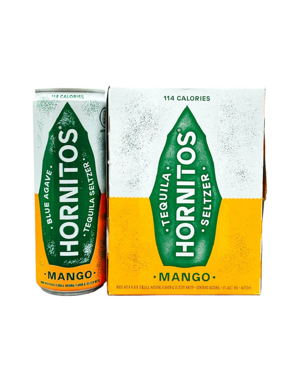 Hornitos Mango Tequila Seltzer RTD (4PK-12oz). From the producer: "Hornitos® has a history of pushing boundaries to defy tradition. That's why we combined bold Plata Tequila with refreshing seltzer and natural Lime, Mango & Pineapple flavors. So, you can take a shot, wherever the night takes you.
