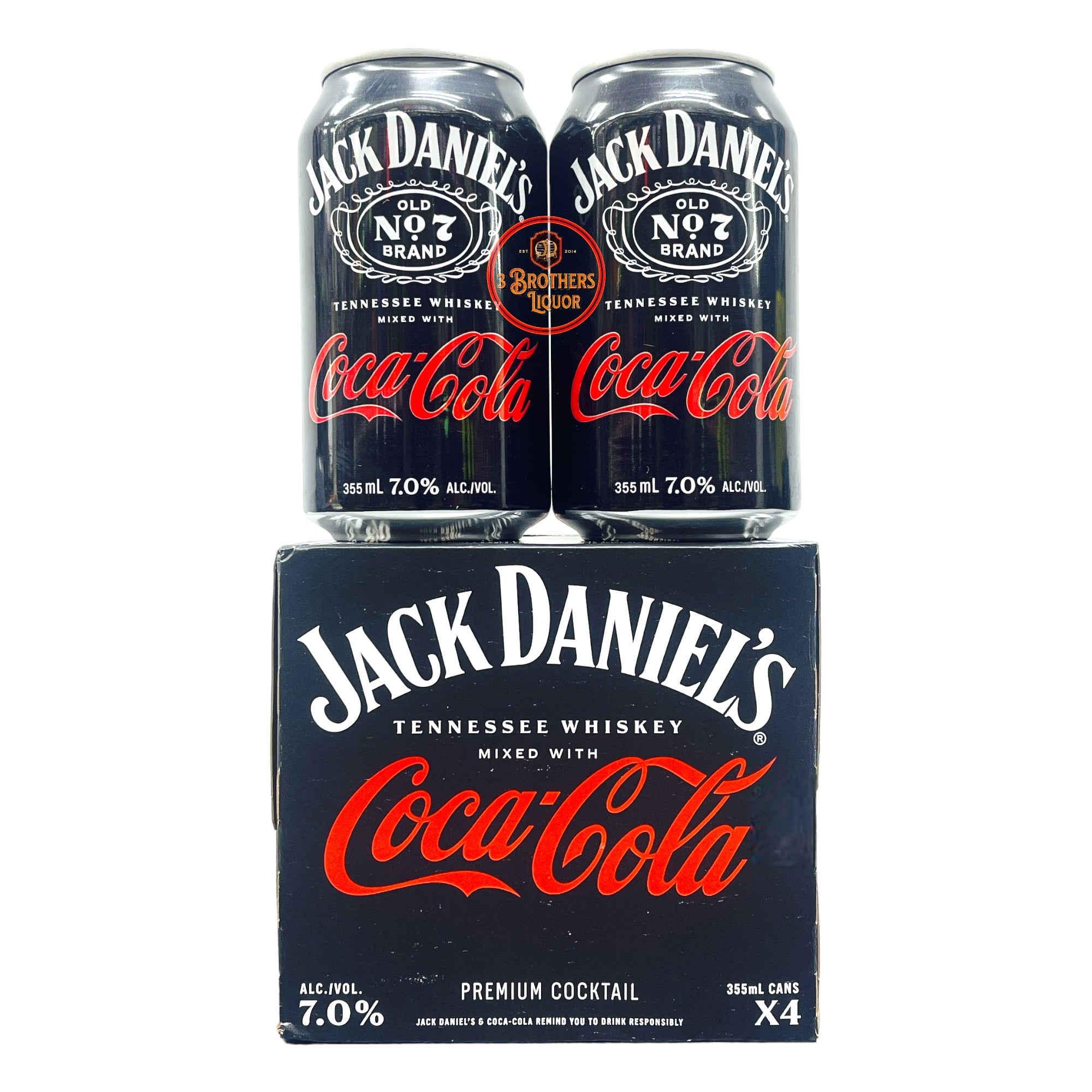 Jack Daniel's Mixed With Coca Cola Premium 4PK Cocktail Cans. Jack Daniel's & Coca‑Cola RTD, inspired by the classic bar cocktail, will be made with Jack Daniel's Tennessee Whiskey and Coca‑Cola.
