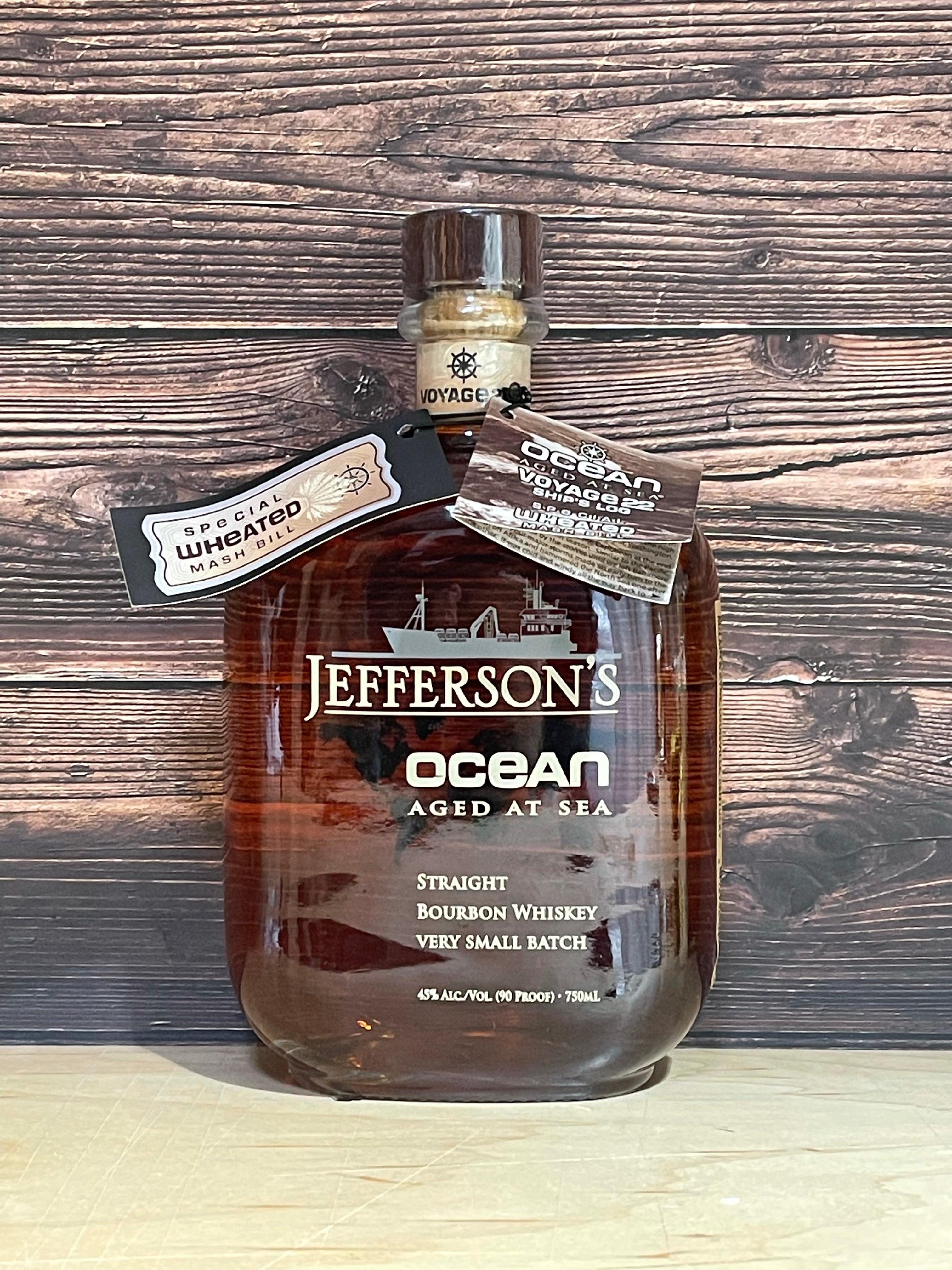 Jefferson’s Ocean At Sea Wheated Straight Bourbon Whiskey (Limited Release). Jefferson’s Ocean Aged at Sea is fully matured for at least four years, then placed in rickhouses on ships to travel the globe which hyper-ages the bourbon.