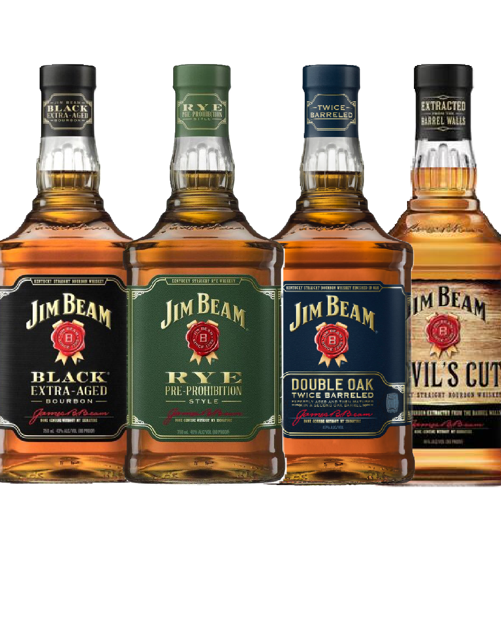 Jim Beam 4 Bottle Combo Collectors Edition (Black, Rye, Double Oak, Devil's Cut) (Pack 2/4)
