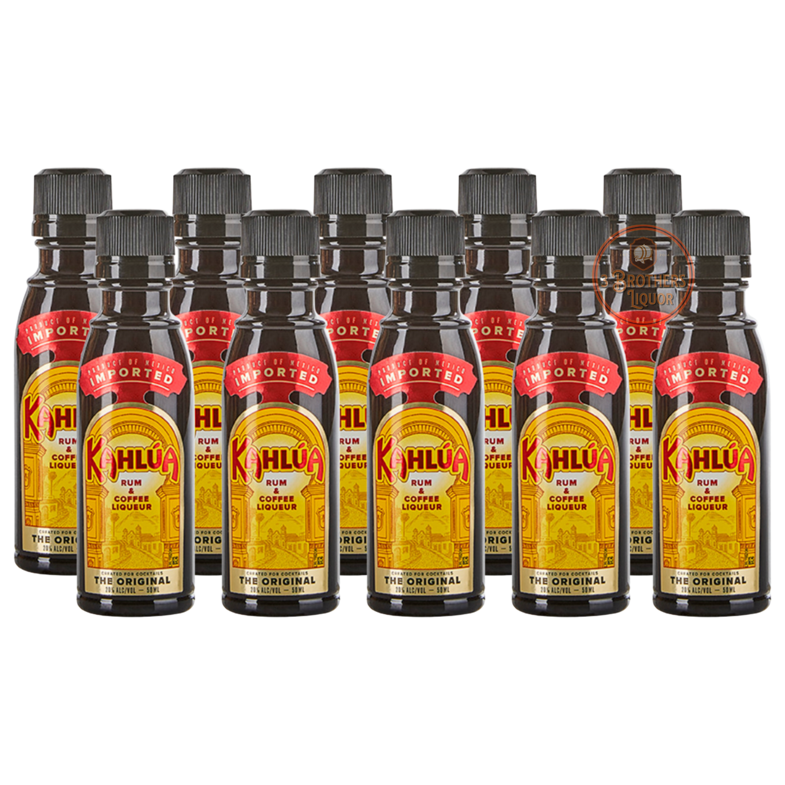 Satisfy your coffee craving with Kahlua Coffee The Original Liqueur Mini Shots. This 10-pack of 50mL shots delivers a strong and intense taste for a unique and flavor-packed experience. Perfect for nights out with friends or special occasions. Enjoy your coffee with a liqueur twist!