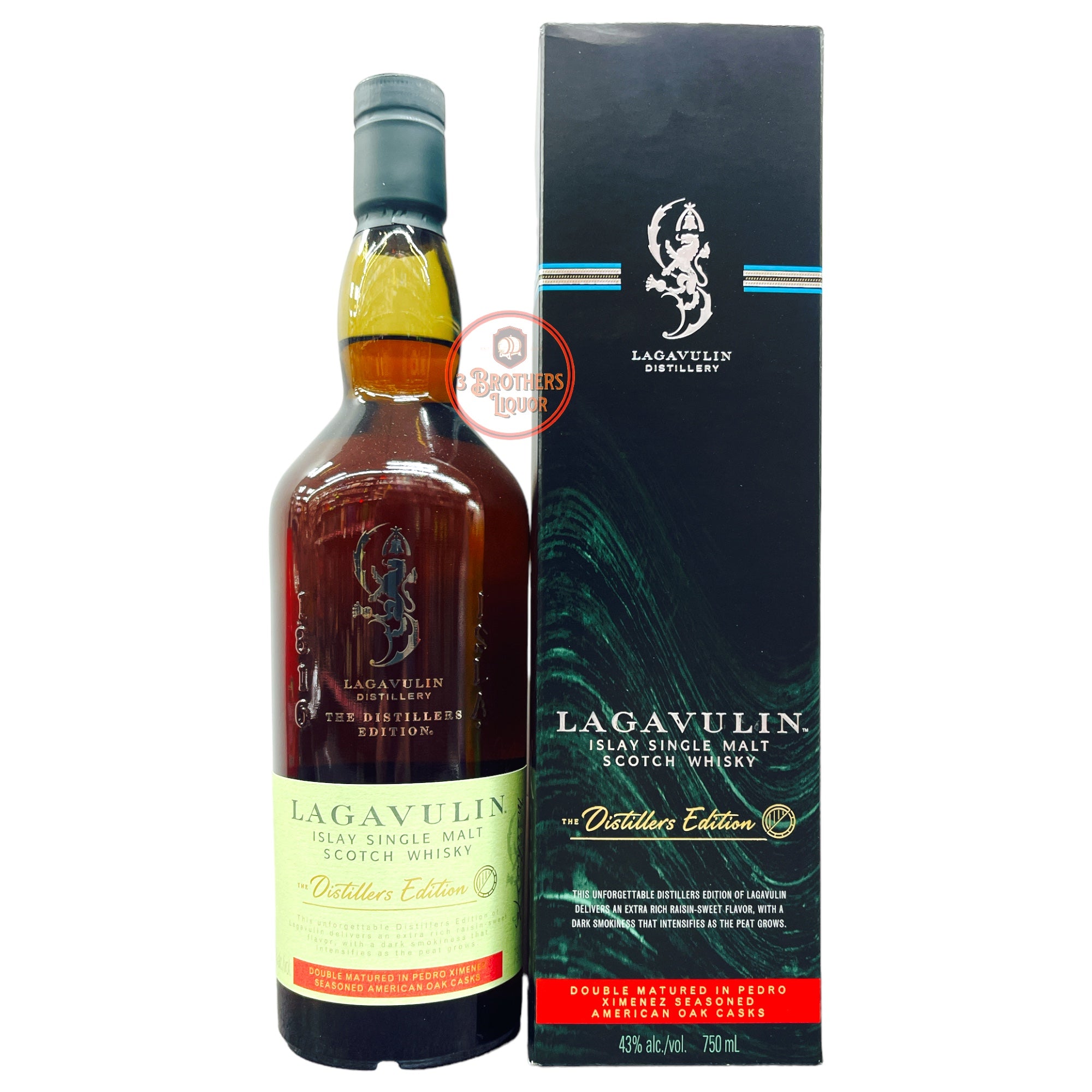Lagavulin The Distillers Edition Islay Single Malt Scotch Whisky. 2006 Lagavulin double-matured in ex-bodega Pedro Ximenez cask wood for an intense, raisiny sweetness that marries beautifully with the smoky power of the regular release to create a massive, rich tasting power-house of a malt.