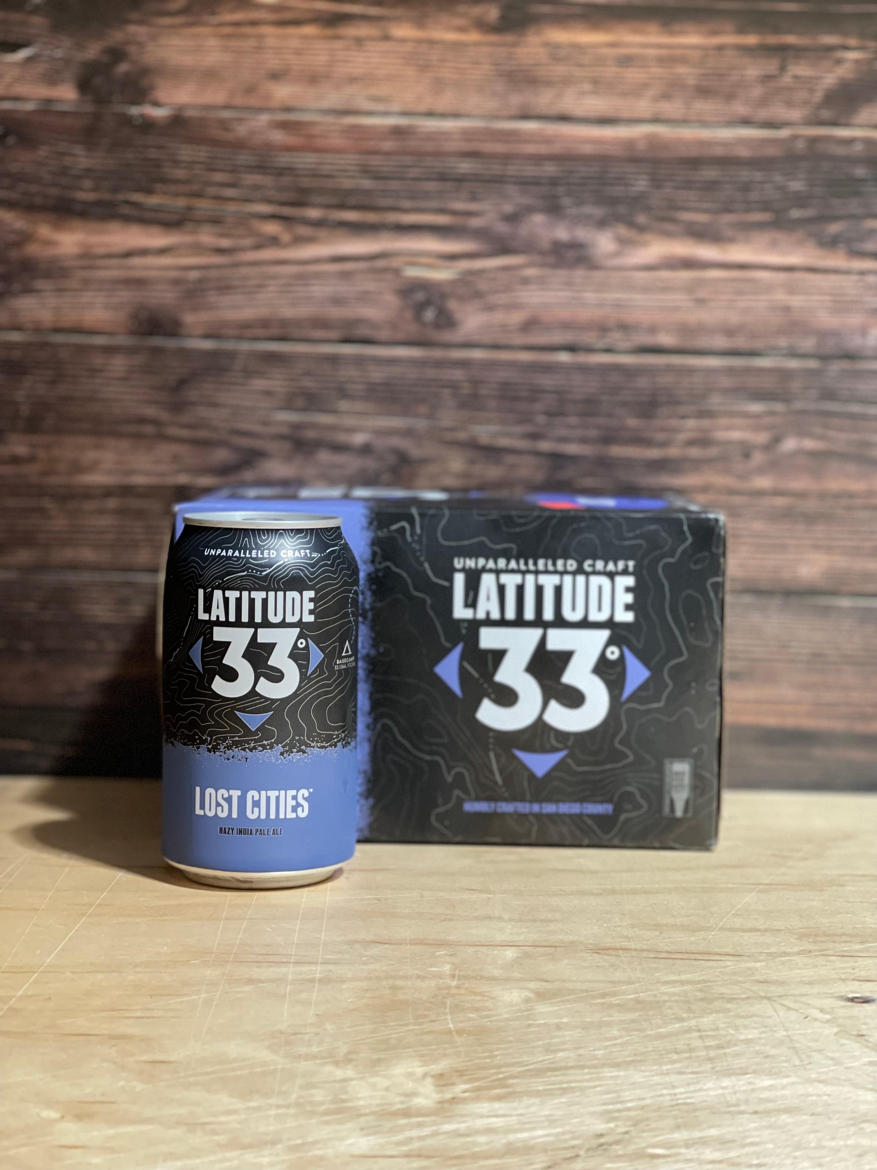 Latitude 33 Lost Cities Hazy IPA We stumbled upon this hazy wonder while navigating through the fog of San Diego’s craze for haze. When the clouds clear, Lost Cities Hazy IPA exposes peaks of flavor erupting with juicy citrus—leaving a desire to experience more unparalleled haze.