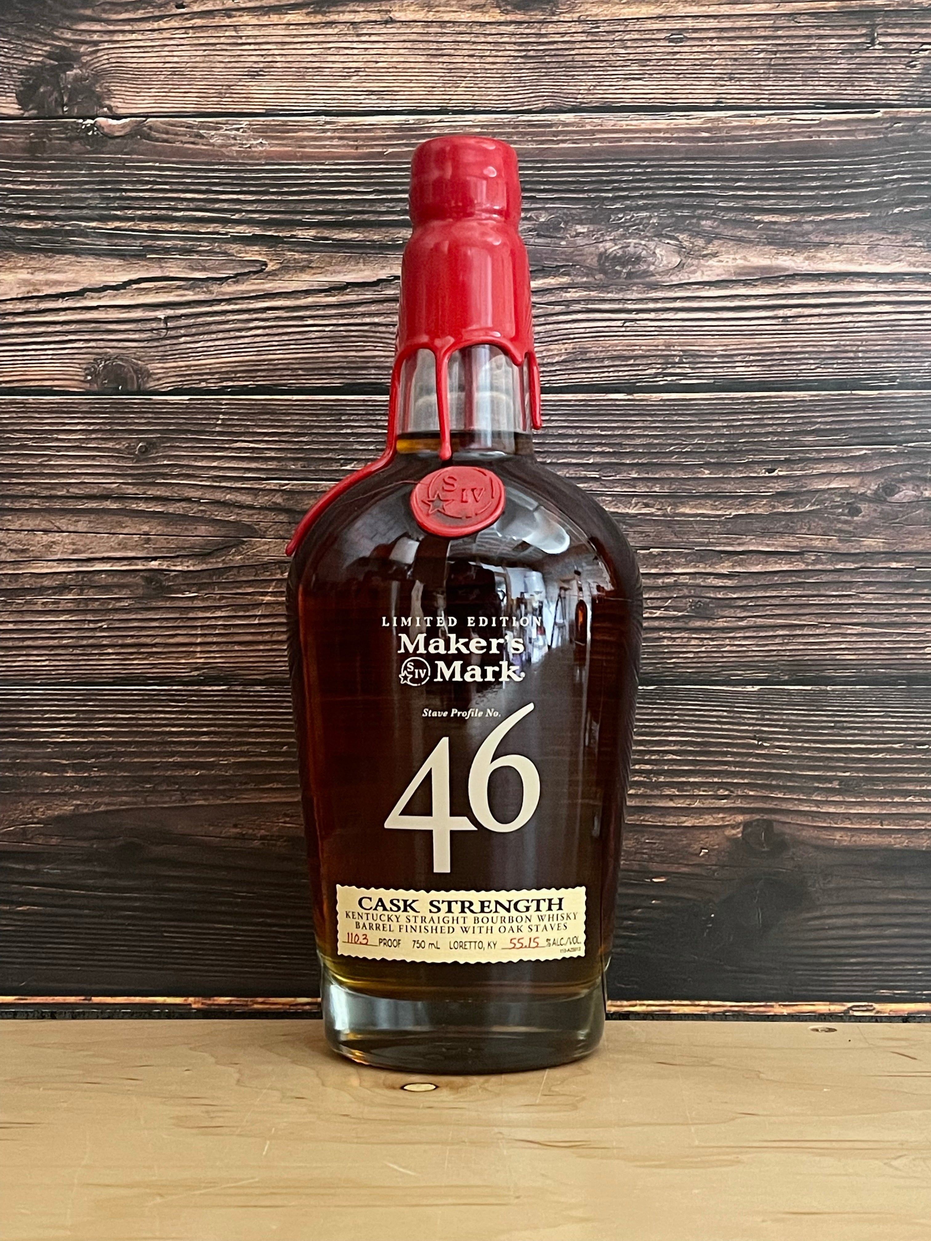 Maker's Mark 46 Cask Strength 110.3 Proof Straight Bourbon Whiskey (Limited Edition). Kentucky- This special-edition of their Wood Finishing Series celebrates the 10th anniversary of Maker's Mark 46, the brand's first innovation since the founding in 1953. Bottled at barrel strength instead of their standard 94 proof.