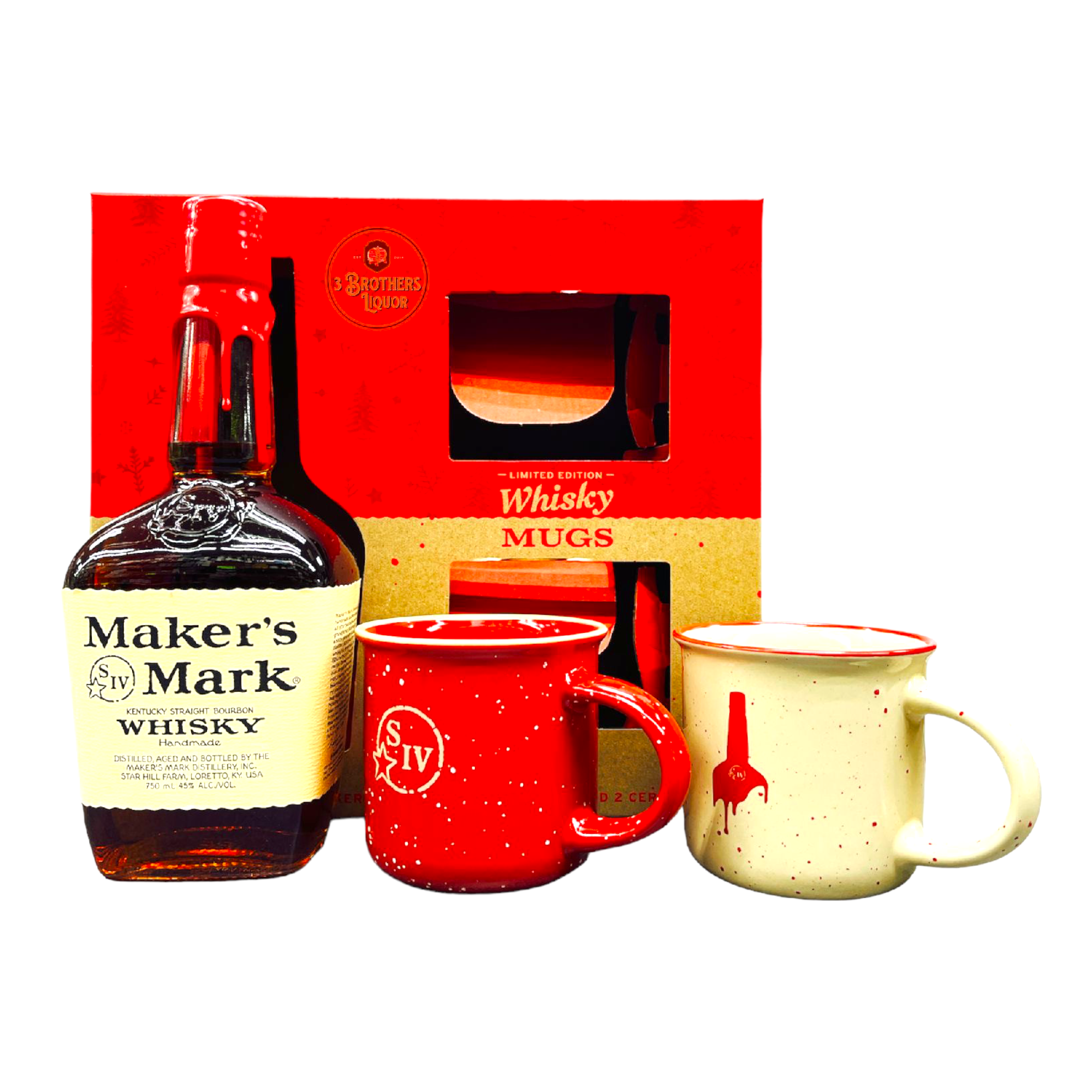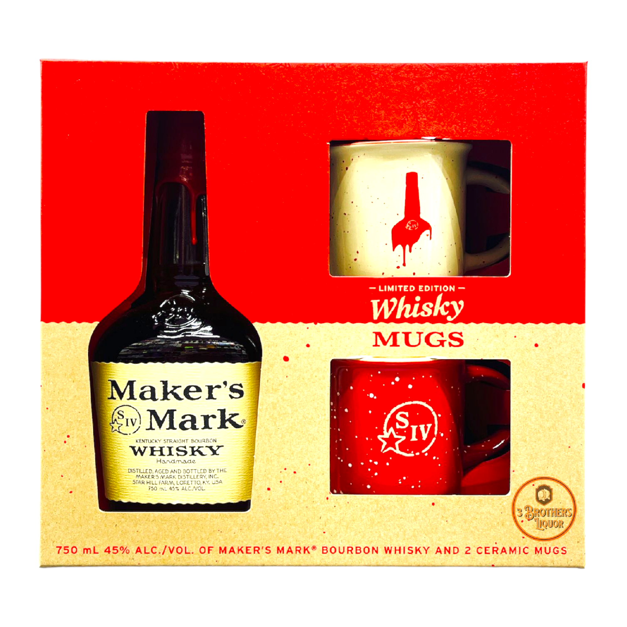 Maker's Mark Bourbon Whiskey Gift Set W/ 2 Limited Edition Whiskey Mugs