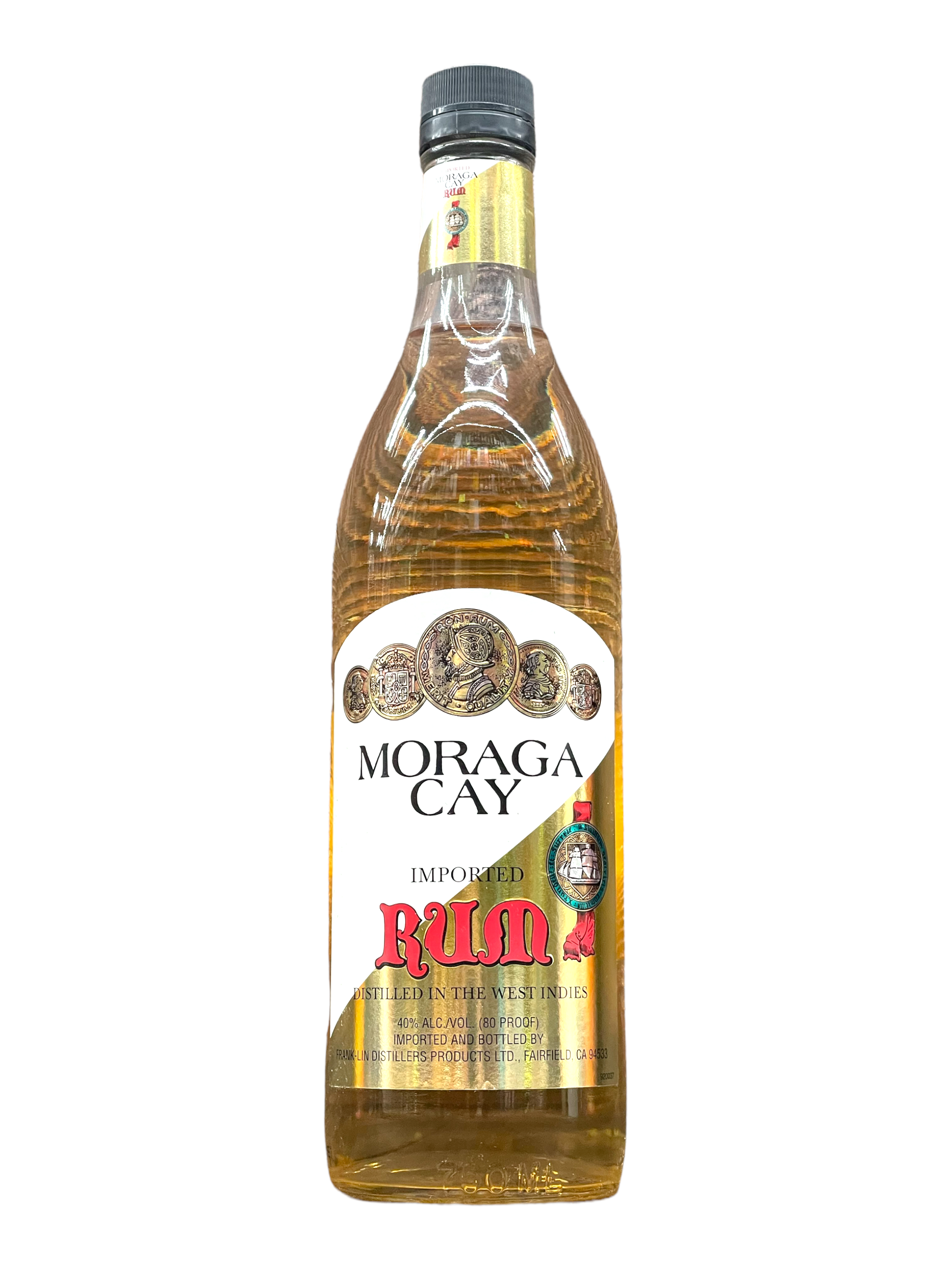Moraga Cay Imported Rum Distilled In The West Indies. Moraga Cay White Rum is distilled in the West Indies, and imported and bottled by Frank-Lin Distillers in San Jose, California. Bottled at 80 proof! This is nice light rum that is good to enjoy in your favorite island drink, or lightly on the rocks.