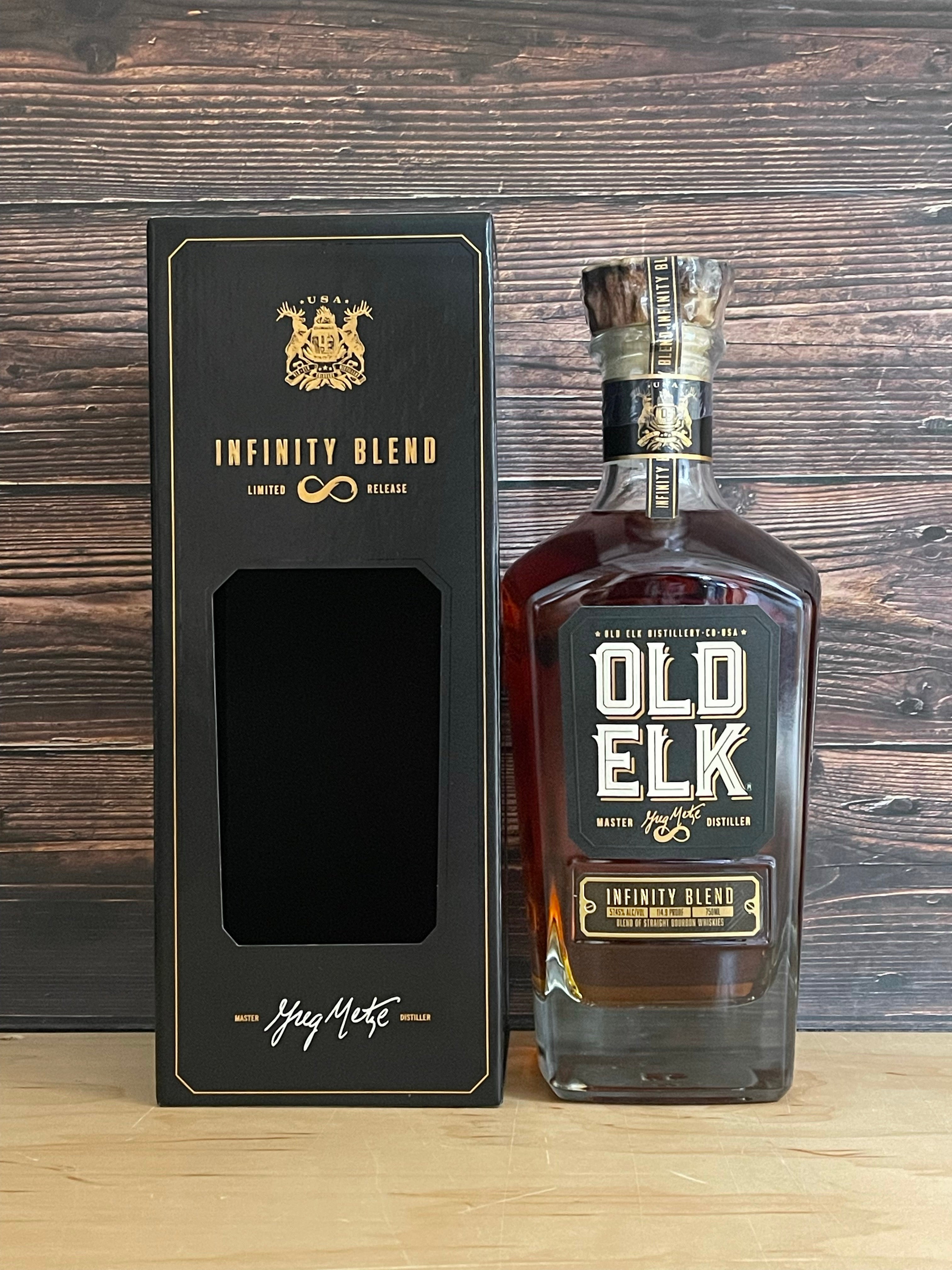 Old Elk Infinity Blend Straight Bourbon Whiskey (Limited Release). Infinity Blend by Old Elk, is a testament to legacy and supreme craftsmanship. Created by Master Distiller Greg Metze, Infinity Blend is the marriage of our signature Old Elk Straight Bourbon Whiskey high-malt mashbill with two classic and vintage Kentucky Straight Bourbon Whiskies.