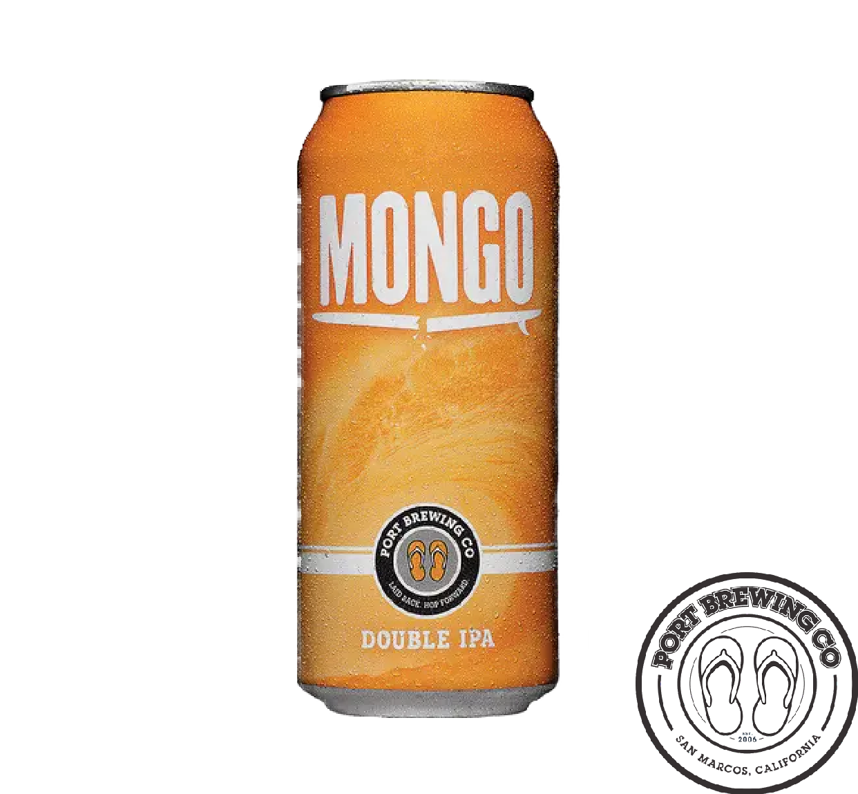 Port Brewing Mongo Double IPA This mongo-sized Double IPA harnesses the flavor of Columbus, Cascade, Centennial, and Simcoe hops for a massive, resinous aroma that leads to citrus notes and a piney bitterness on the finish.