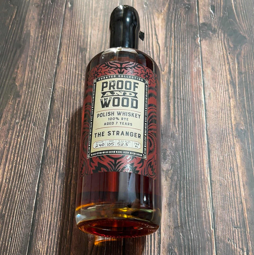 Proof And Wood The Stranger Polish Rye Aged 7 Rye Whiskey (Curated Collection), The Stranger Polish Whiskey. This Rye was distilled from 100% rye in Poland and aged in there USA in ex-bourbon and ex-rye barrels. 10 barrel batch!